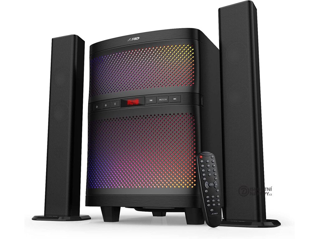 Na první pohled je jasné, že nepůjde o ukřičené chrčící chcípáčky za pětistovku. Dva satelity, každý se dvěma 2" měniči o výkonu 17,5 W, a subwoofer s 8" basovým reproduktorem a výkonem 35 W se už dají považovat za více než uspokojivé řešení, co říkáte? Právě subwoofer předvede opravdu parádní přednes a kromě toho je také vybaven LED diodami, takže při poslechu koncertu vás doslova vtáhne do arény. Je směrován do podlahy a tak si vychutnáte mocné basové tóny a vaše srdce se rozhoupe do rytmu každého songu. Ani satelity nezůstávají pozadu – díky jejich úzkému designu je můžete umístit také vertikálně a vytvořit tak elegantní soundbar pod televizor šetřící místo. Kouzlo této sestavy ale spočívá především v její překvapivé funkčnosti a konektivitě.