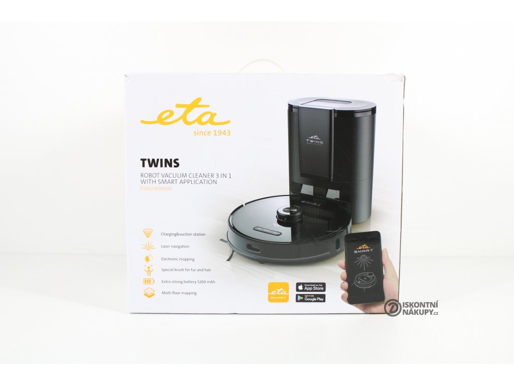 Robotický vysavač ETA Twins 6240 90000 ..Použito - ušpiněno ..Kosmetické oděrky ..Chybí návod + sáček + nástroj na čištění ..Poškozený štětinový kartáček ..Záruka 12 měsíců