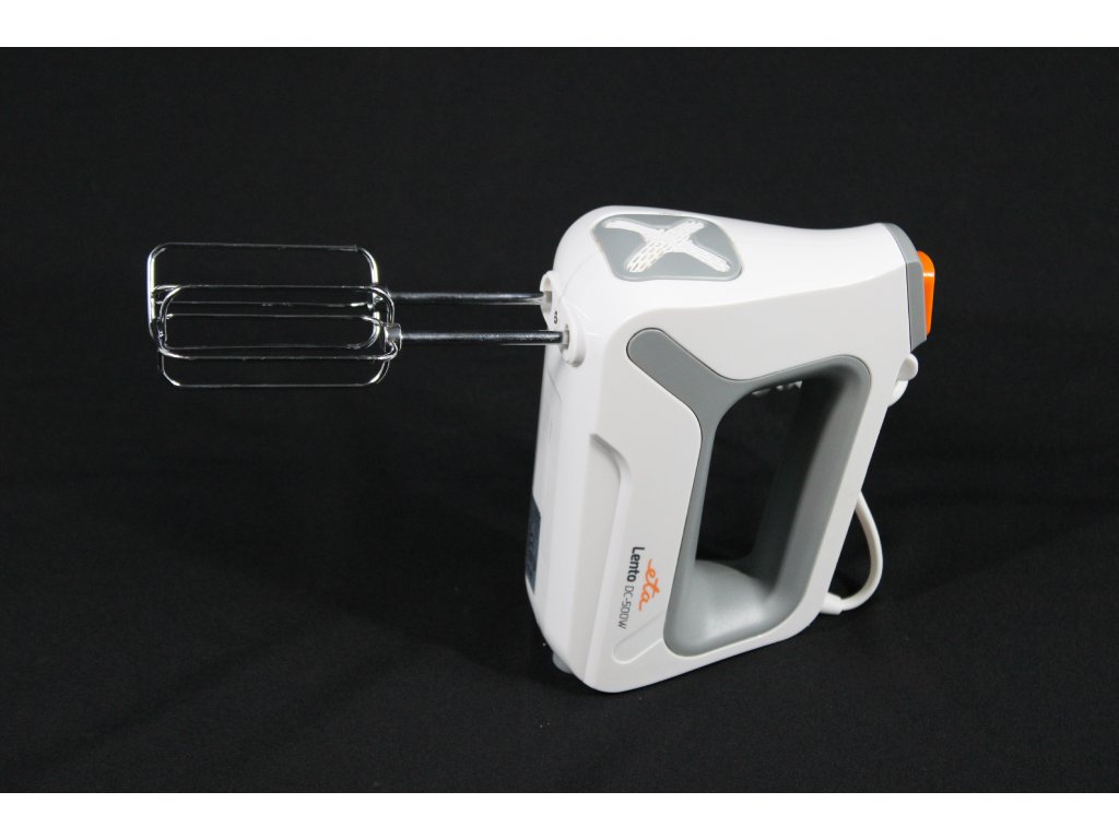 ruční mixér • mixuje, hněte, šlehá • 4 rychlosti • pulzní spínač • odlehčená konstrukce • ergonomicky tvarovaná rukojeť • 2 dlouhé metly a 2 háky • bezpečnostní pojistka proti přehřátí motoru • délka kabelu 1,2 m • příkon 500 W • hmotnost 1,1 kg • rozměry 8,5 × 18,5 × 15,1 cm (š × v × h)