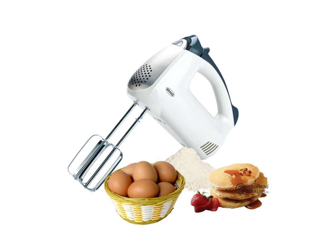 Praktický šlehač do ruky za dobrou cenu. Výkonný ruční šlehač, který má 5 rychlostních stupňů + tlačítko TURBO. Součástí jsou 2 šlehací a 2 hnětací metly z nerez oceli .