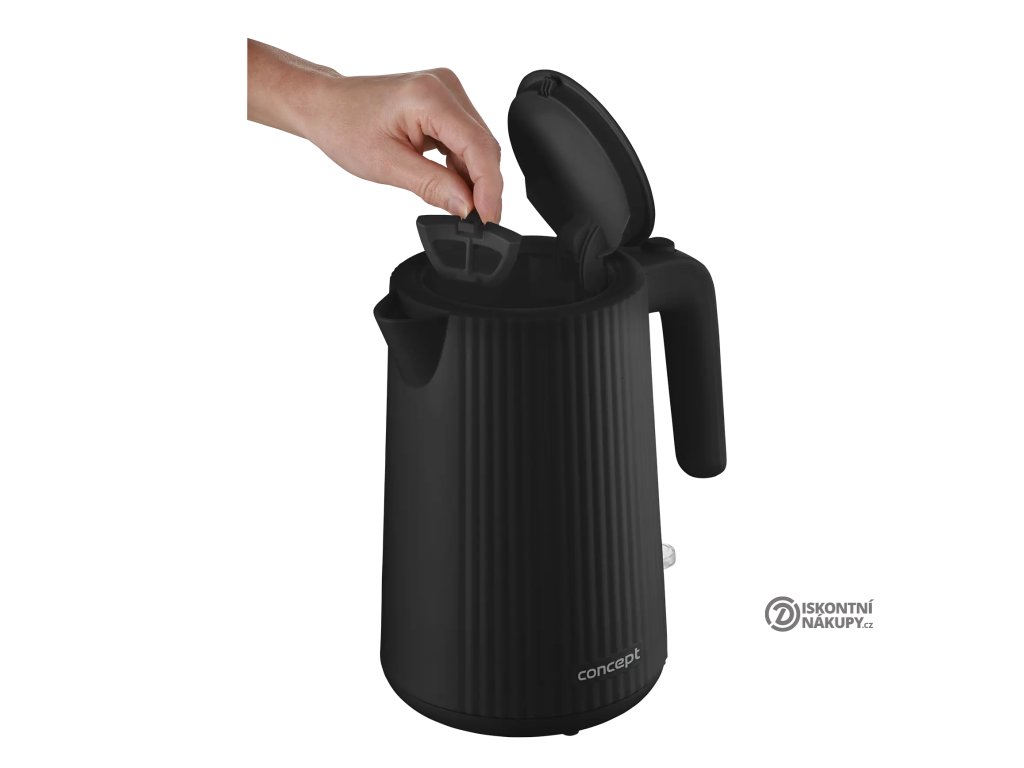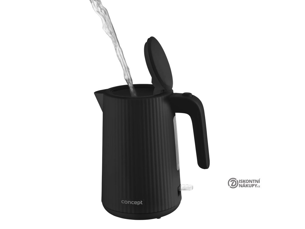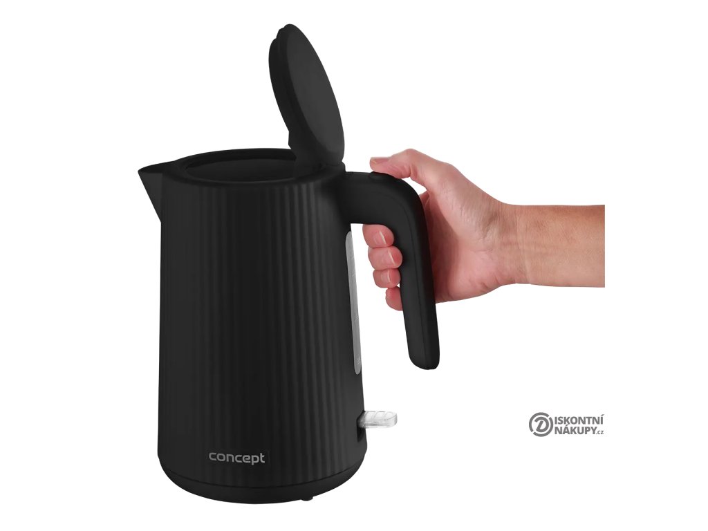 Elegantní plastová konvice s objemem 1,7 l zaujme svým stylovým černým vroubkovaným designem, který se hodí do každé kuchyně. Praktická kontrolka provozu s jemným bílým podsvícením signalizuje, kdy je konvice v chodu, a zajišťuje tak přehledné a bezpečné používání. Díky velkému objemu připravíte snadno dostatek horké vody pro celou rodinu.