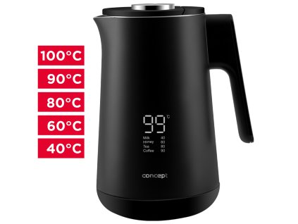 Digitální rychlovarná konvice Concept RK3340 INTUITIVE vyniká elegantním dvouplášťovým provedením a přehledným displejem. Nabízí objem 1,7 l, možnost regulace teploty a bezpečný...