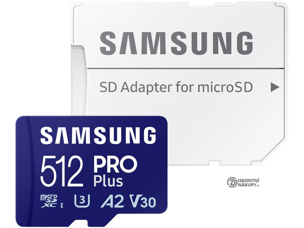 Samsung PRO Plus microSDXC 512 GBPaměťová karta formátu microSDXC nabízí kapacitu 512 GB. Rychlost čtení je až 180 MB/s a rychlost zápisu až 130 MB/s. Samozřejmostí je pak odolnost vůči vodě, nárazům, extrémním teplotám, magnetům i rentgenovému záření.