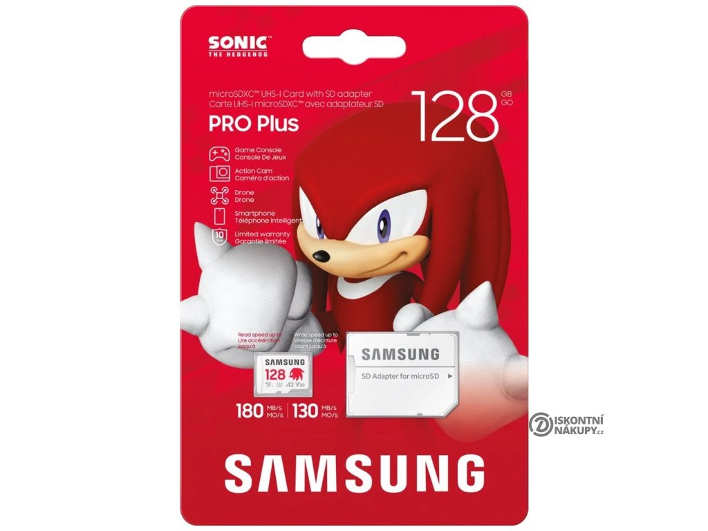 Paměťová karta Samsung PRO Plus Sonic the Hedgehog, která je rychlá stejně jako modrý kulový blesk. Jedná se oficiálně licencovaný produkt, který potěší všechny fanoušky kultovního ježka Sonica. Disponuje kapacitou 128 GB a nabízí tak obří prostor pro všechna vaše multimédia. Umožní vám bez kompromisů uložit hry, filmy, videa i fotografie a vaše multimediální knihovna může dlouhodobě růst.