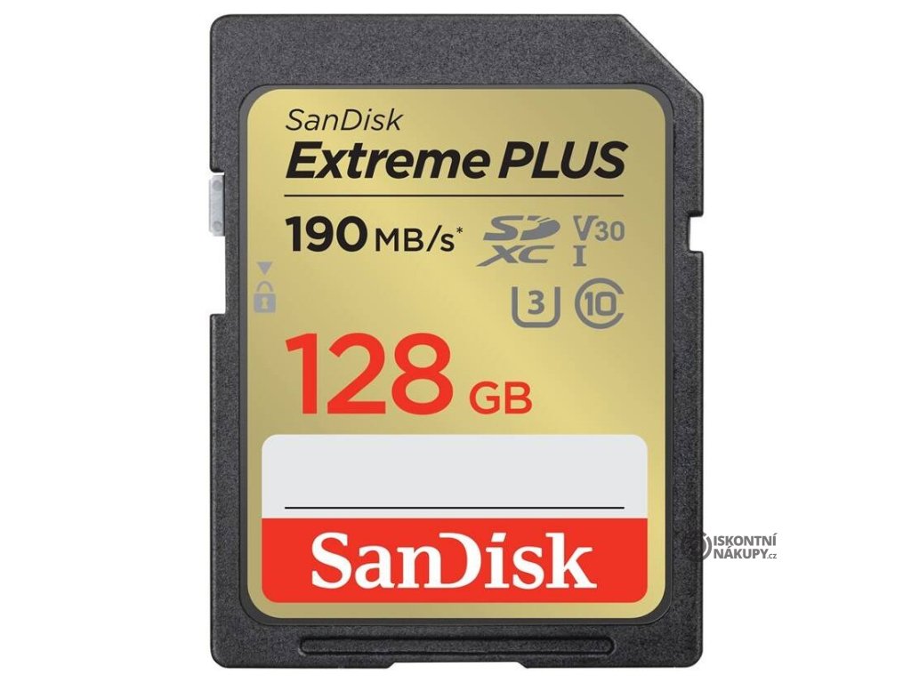 SanDisk Extreme PLUS 128GB SDXC / UHS-I, Class 10, U3, V30 / up to 190MB/s & 90MB/s Read/Write / + 2 years RescuePRO SDSDXWA-128G-GNCIN