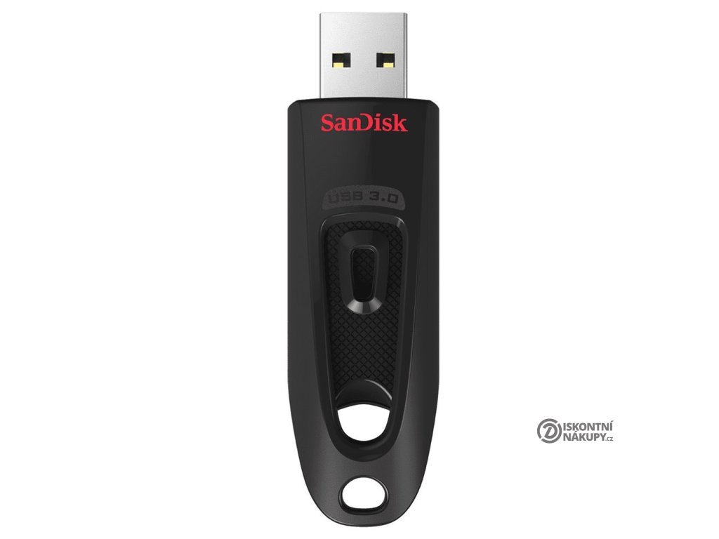 SanDisk Ultra 128 GBFlashdisk s kapacitou 128 GB a výsuvným mechanismem, který chrání konektor. Rozhraní USB 3.0 dosahuje až 10× vyšší přenosové rychlosti oproti diskům s USB 2.0.