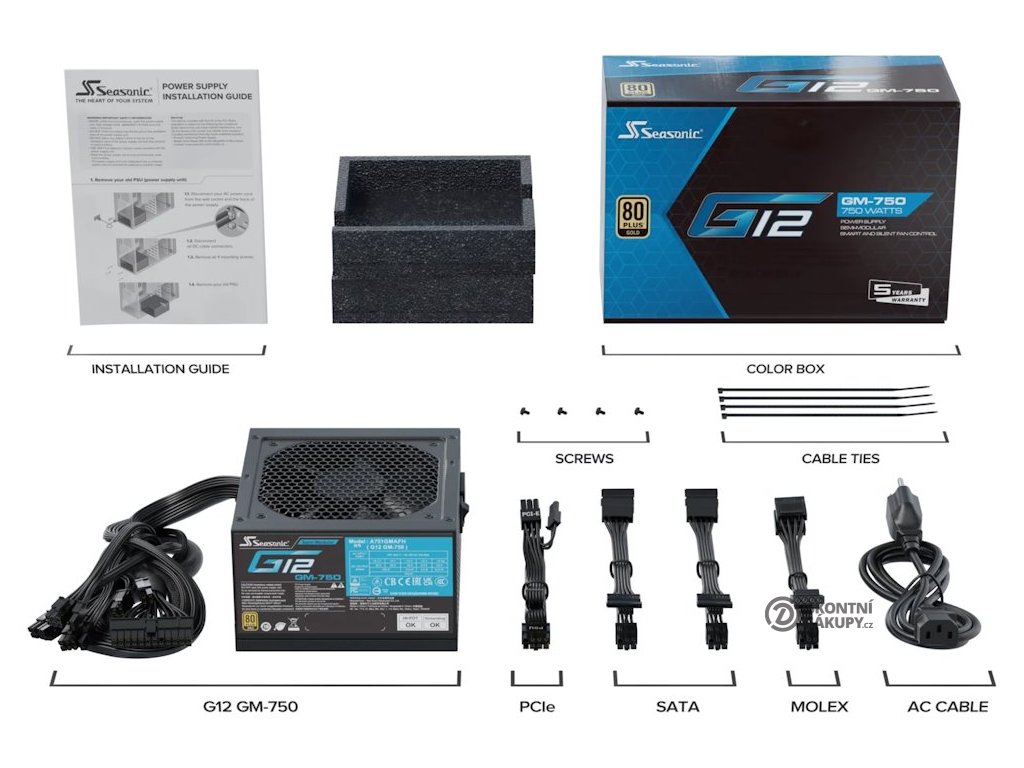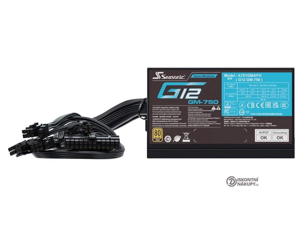 Seasonic G12-GM-750 (V1.5) 750 WNapájecí zdroj o výkonu 750 W je osazen tichým 120 mm velkým ventilátorem. Zdroj splňuje certifikaci 80PLUS Gold a má částečně odpojitelné kabely.