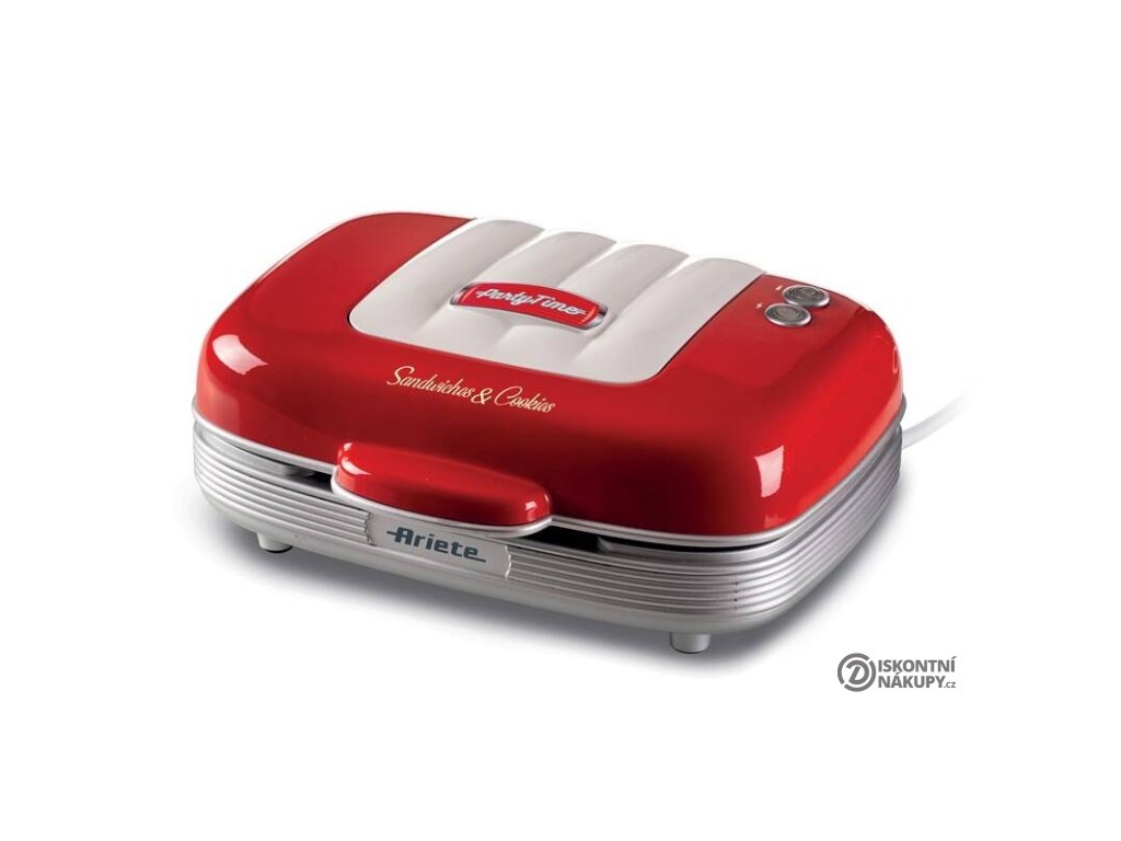Sendvičovač Ariete Party Time ART 1972, 2 v 1 červený ..Rozbaleno - Vráceno ..Chybí desky na trojúhelníky ..Kosmetické oděrky ..Záruka 12 měsíců