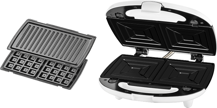 Ať dostanete chuť na šťavnaté grilované maso, zeleninu, nebo na křupavé toasty, panini či vafle, sendvičovač se třemi výměnnými deskami si poradí hravě se všemi úpravami. Nepřilnavý povrch pečících výměnných ploch zajistí, že připravované pokrmy k nim nebudou nikdy připečené. Za hlavu můžete hodit i starosti s údržbou výměnných ploch. Postačí je snadně vyjmout a umýt. O bezpečnou