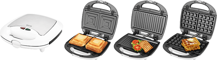 Základem každého dobrého rána je vydatná snídaně. S její přípravou vám pomůže sendvičovač ECG S 399 3in1 White. Není nad vůni lahodných a křupavých sendvičů, slaďoučkých vaflí nebo delikátních panini. S tímto pomocníkem v nestárnoucím bílém provedení totiž zvládnete všechny tyto pochoutky. Díky třem vyměnitelným pečicím deskám pohostíte všechny mlsouny.