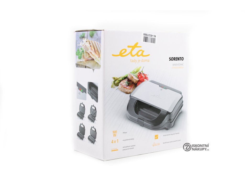Sendvičovač ETA Sorento se 4 páry výměnných desek pro 1000 různých variací zapékání.