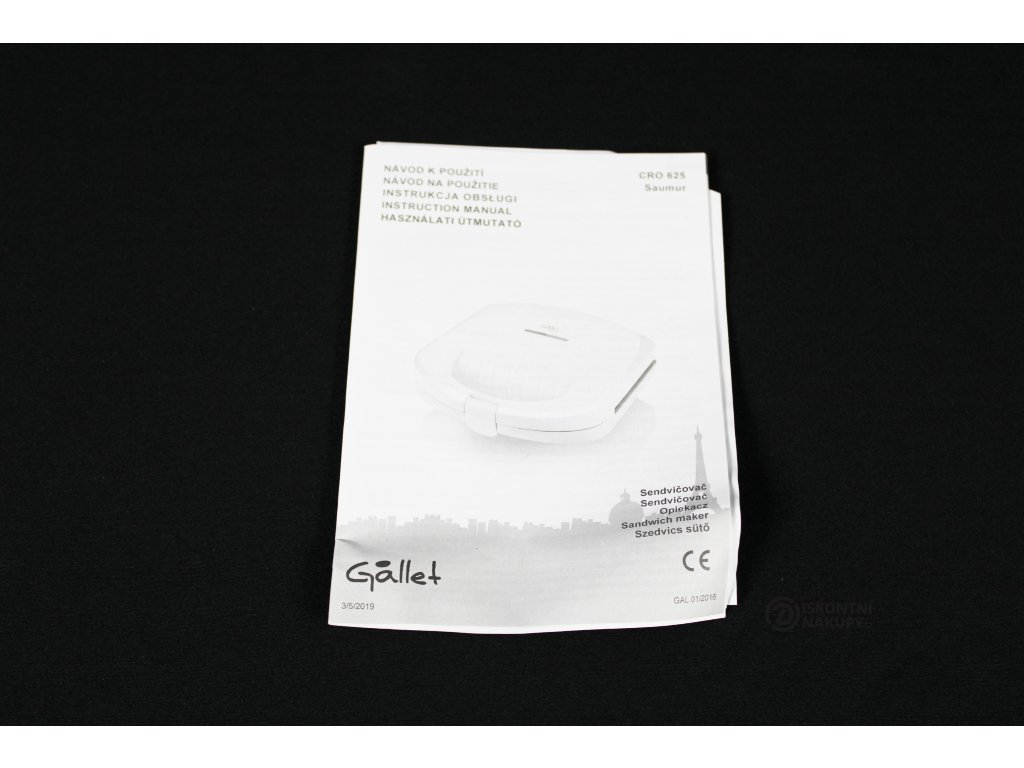 Sendvičovač Gallet Saumur CRO 625 bílý ..Nepoužité zboží ..Pouze rozbaleno ..Poškozená krabice
