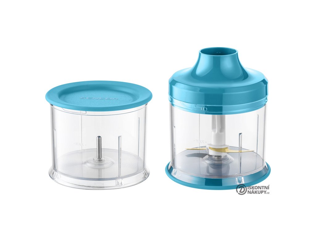 Mojí součástí jsou dvě nádoby. Nádoby pro mixování a sekání o objemu 700 a 500ml. Tyto nádoby jsou vybaveny chytrou protiskluzovou podložkou, kterou lze využít dvěma způsoby.