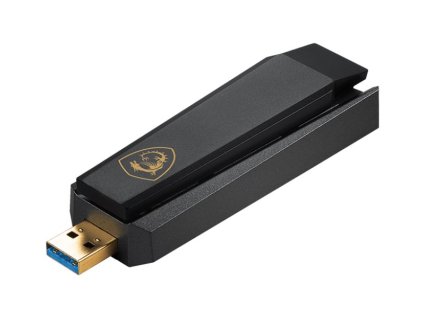 MSI AXE5400 Wi-Fi USB adaptér; Kompaktní Wi-Fi USB adaptér poskytuje téměř okamžitý upgrade pro váš stolní počítač nebo notebook. S podporou Wi-Fi 6E nabízí přenosovou rychlost...