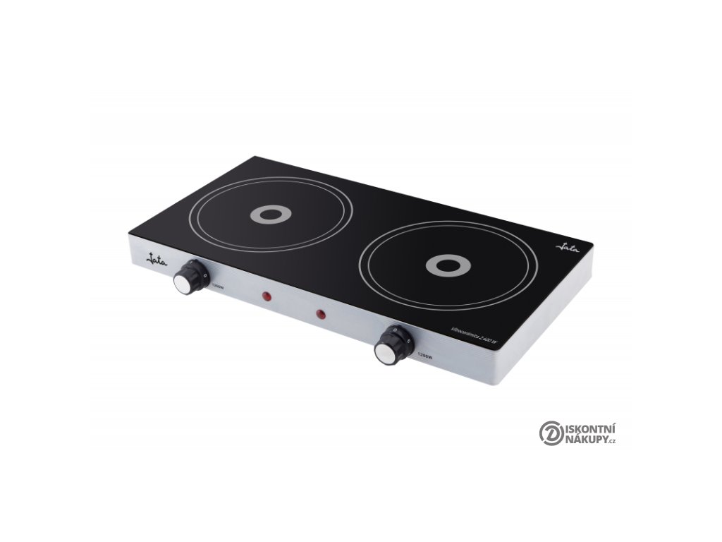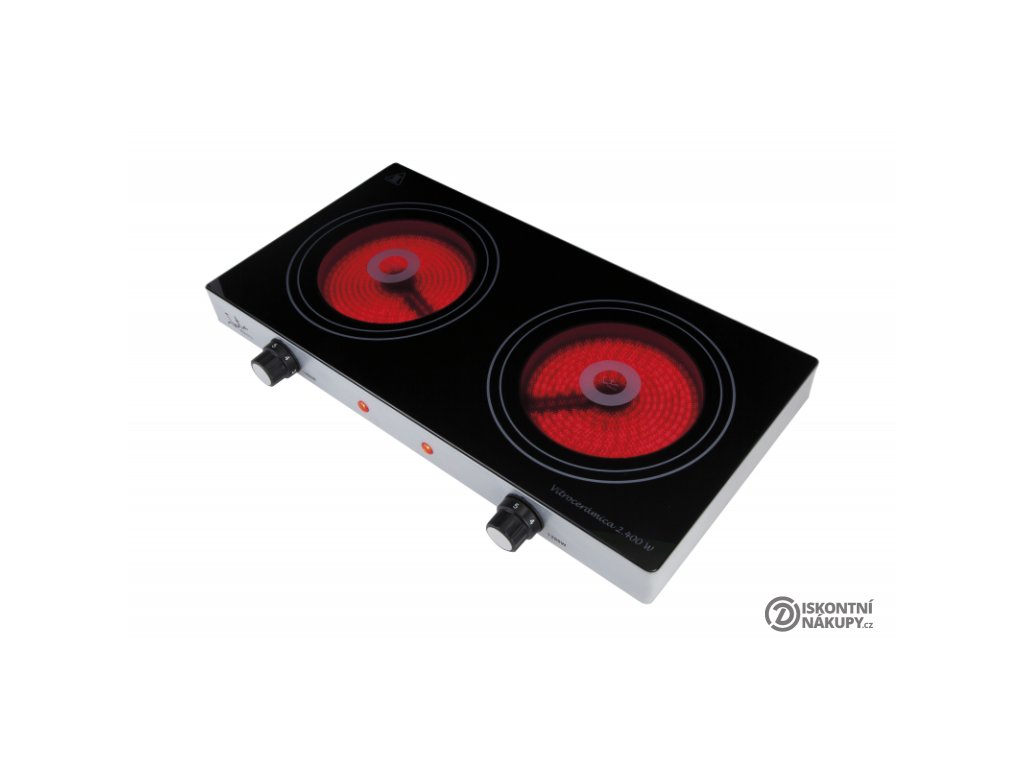 Sklokeramický dvouplotýnkový vařič. Příkon 2400 W, kovové tělo, 2 keramické varné desky: 1200 W - 165 mm průměr. 2 termostaty. Ochrana proti přehřátí. Není nutné měnit používané nádobí, pokud má rovné nedeformované dno.