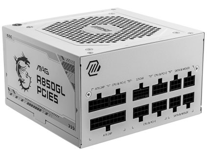 MSI MPG A850GF; Napájecí zdroj je osazen tichým 140 mm ventilátorem s FDB ložiskem. Účinnost zdroje je až 90 %. Kabely jsou plně odpojitelné. ZÁKLADNÍ SPECIFIKACE; Výkon: 850 W;...