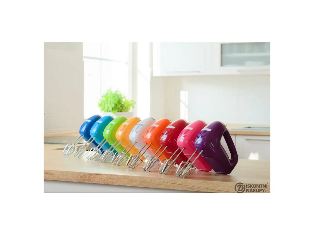 Ruční šlehač, 5 rychlostních stupňů, turbo, 2 druhy nástavců (šlehací+hnětací metly), tlačítko pro uvolnění nástavců, snadné čištění, tepelná pojistka tichý provoz, výkon 200W