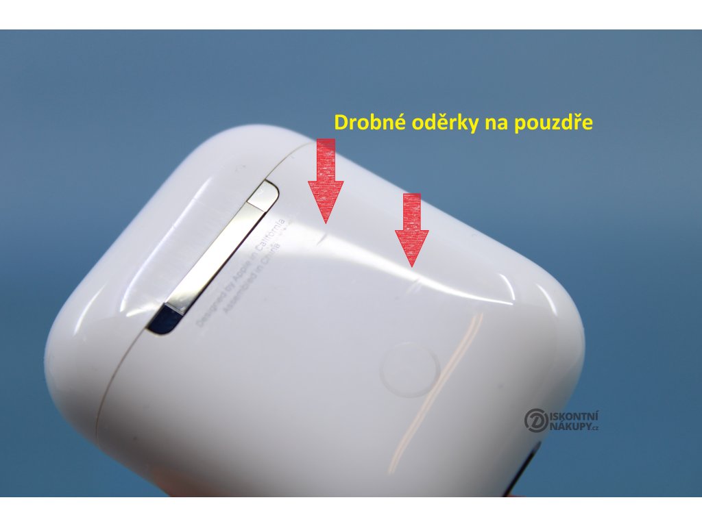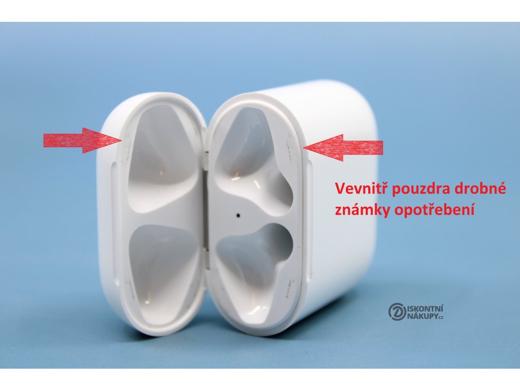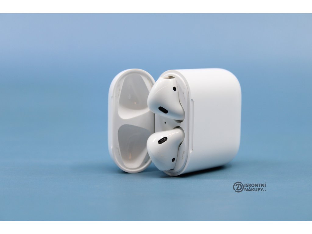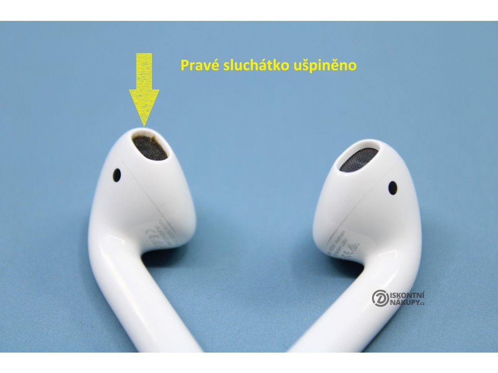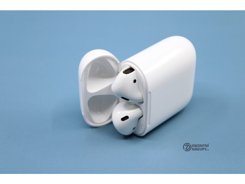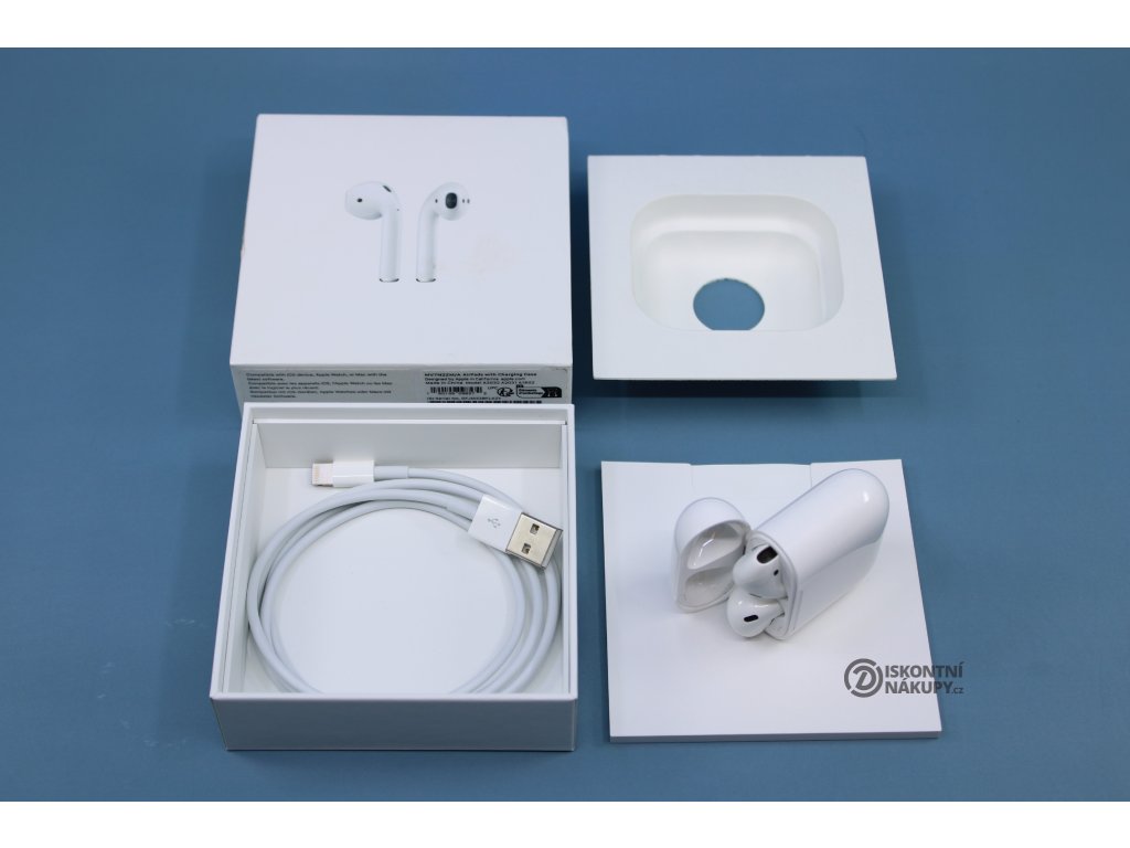 Sluchátka Apple AirPods (2019) (MV7N2ZM/A) bílá ..Pravé sluchátko ušpiněno ..Vevnitř pouzdra známky opotřebení ..Drobní oděrky na pouzdře ..Záruka 12 měsíců
