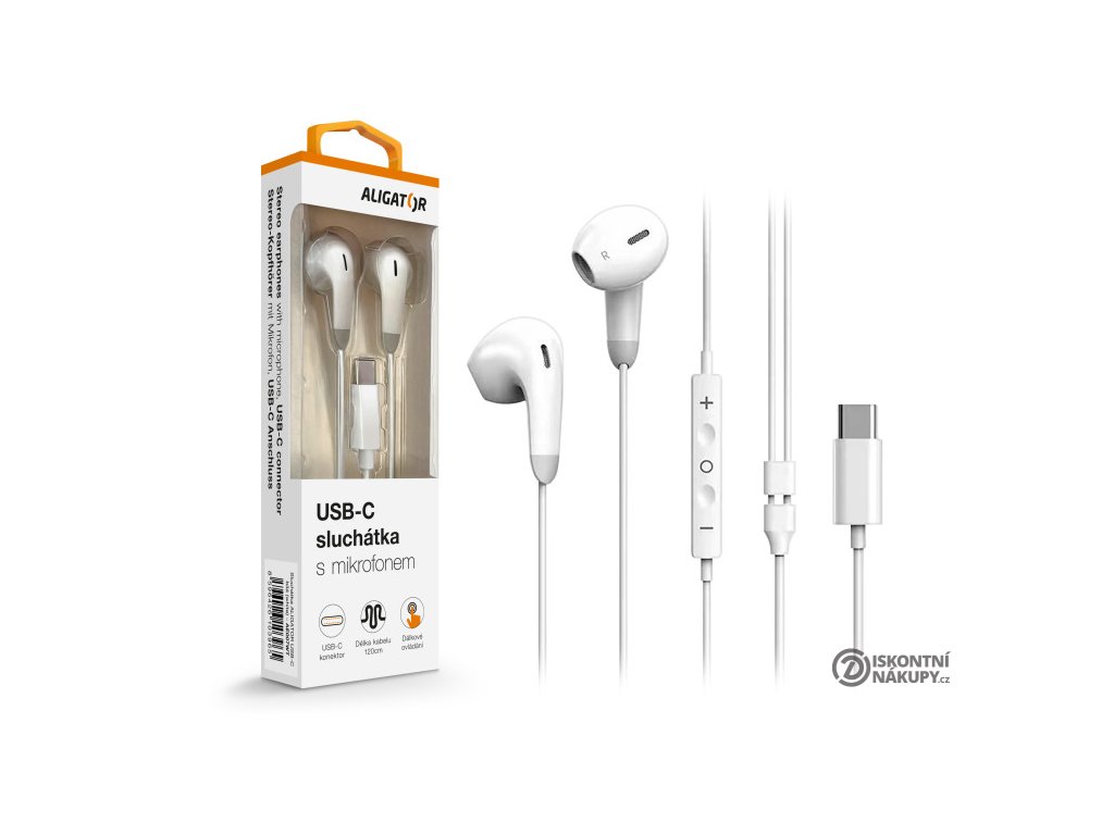 Sluchátka s USB-C konektorem ALIGATOR bílá