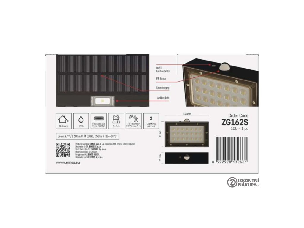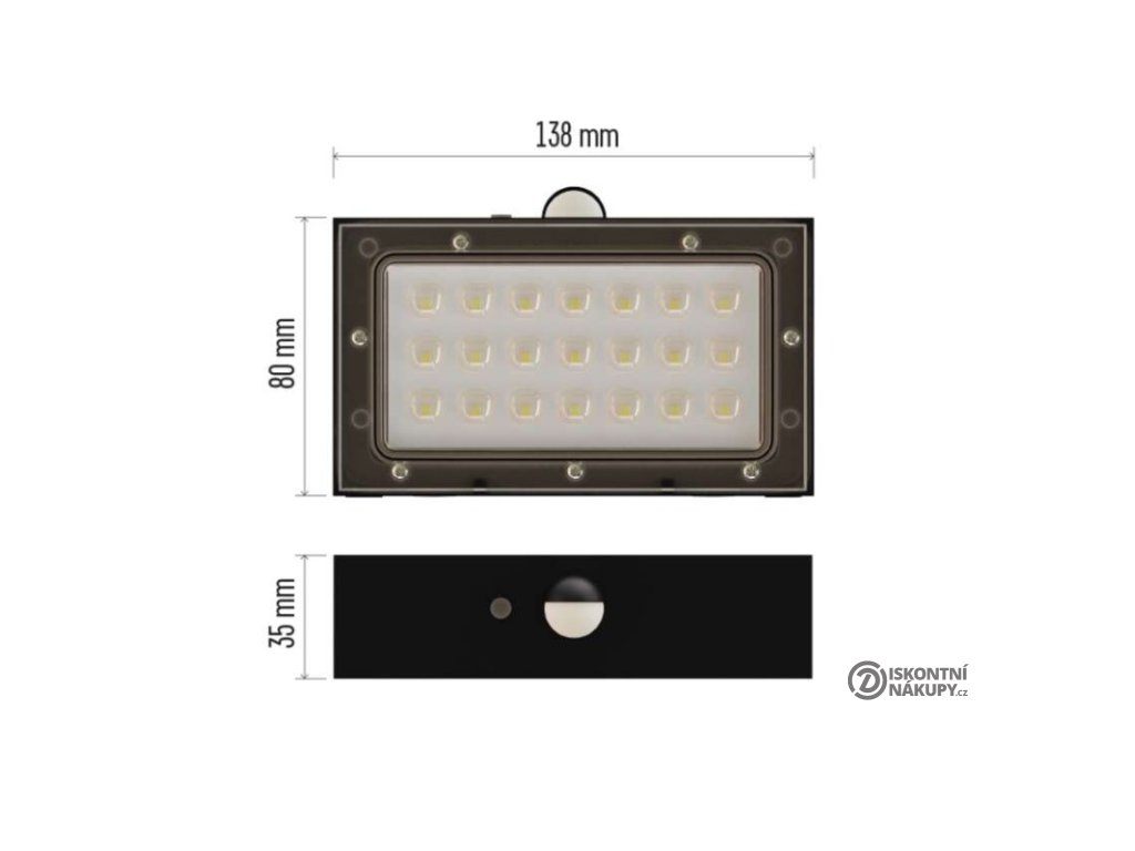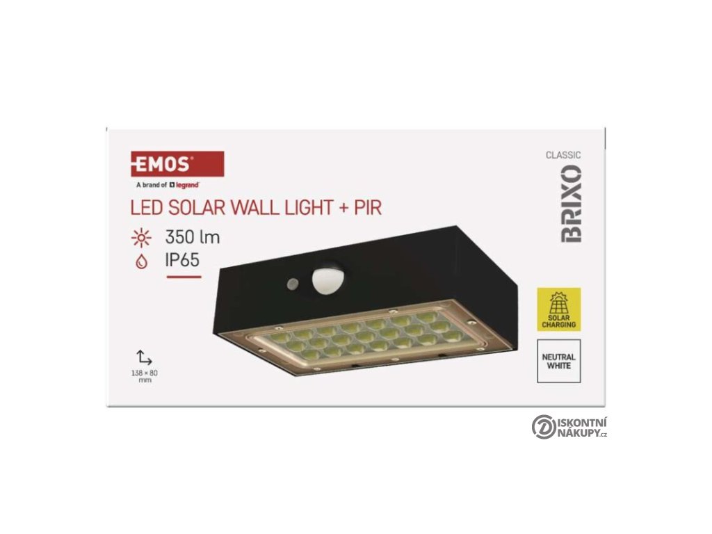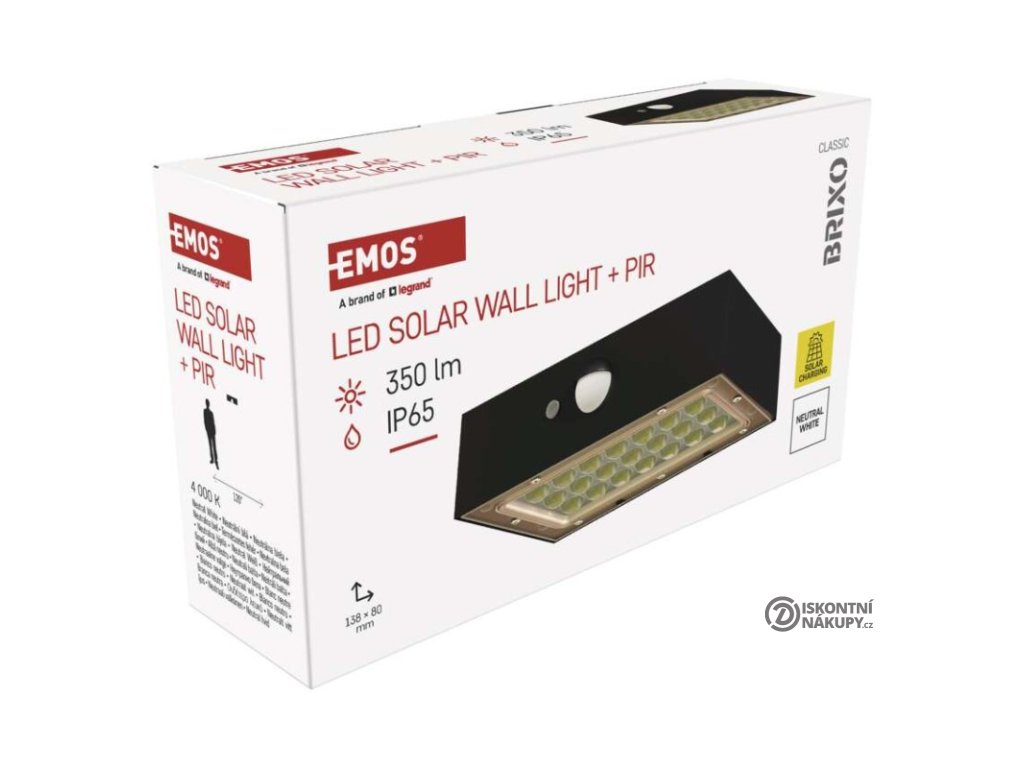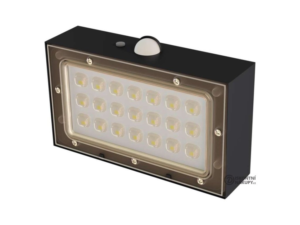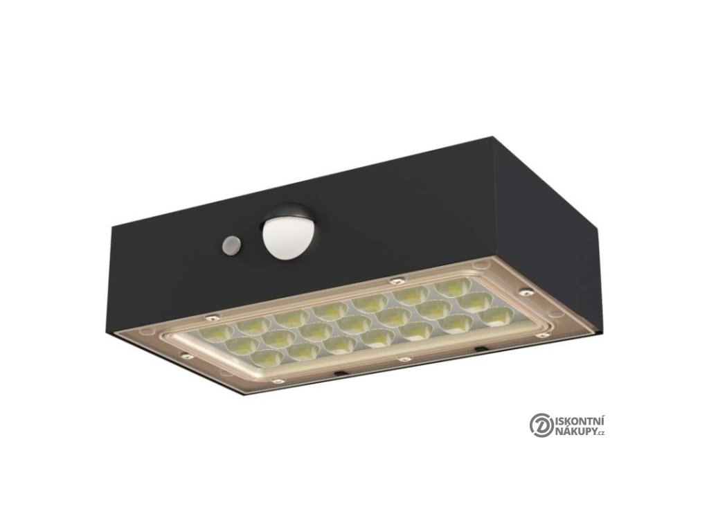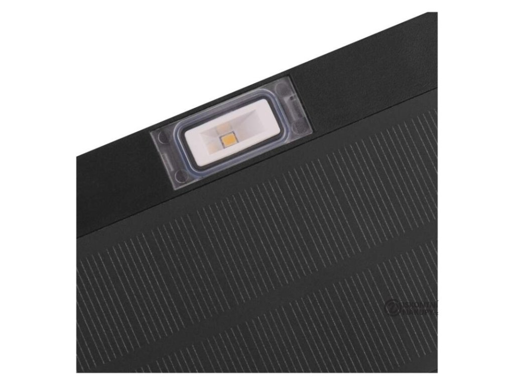 akumulátor: Li-Ion 1 200 mAh|barva: černá|barva světla: neutrální bílá|délka přívodního kabelu: neuvádí se|doba svícení na AKU: 35 hodin|dosah PIR senzoru: 6 m|energetická třída použitého světelného zdroje: neuvádí se|flicker-free: nebliká|frekvence: neuvádí se|index podání barev (CRI): Ra > 80|kategorie: CLASSIC|krytí: IP65|materiál difuzoru: plast (PC)|materiál přívodního kabelu: neuvádí se|materiál těla: plast (ABS+PC)|napájení: solární|napětí: 3,7 V|PIR senzor: ano|počet průchozích zásuvek: neuvádí se|použití: povrchová montáž|příkon: –|prodejní obal: 1 ks, krabice|proud: neuvádí se|řada: neuvádí se|rozměr: 138 × 90 × 35 mm|rozsah pracovní teploty: -20 °C až +50 °C|stmívání: neuvádí se|stupeň ochrany proti mechanickým nárazům: neuvádí se|světelná účinnost: neuvádí se|světelný tok: 350 lm|teplota chromatičnosti: 4 000 K|typ přívodního kabelu: neuvádí se|typ průchozích zásuvek: neuvádí se|typ stmívání: –|účiník: neuvádí se|úhel vyzařování: 140° × 70°|záruční doba: 2 roky|zdroj světla: LED|životnost: neuvádí se|zkušební žárovka součástí balení: neuvádí seDoplňkové parametry