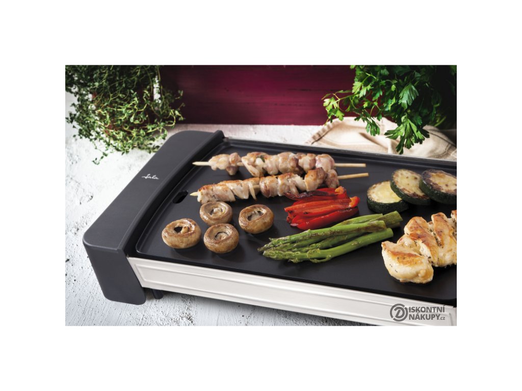 Chytrý stolní gril Jata GR2600. Digitální nastavení teplot. Nepřilnavý povrh. Spirála M zajišťující skvělý rozvod tepla a rovnoměrnou teplotu po celé ploše grilu. Elektronické ovládání funkcí. 4 teploty: 75/120/160/230 ° C..