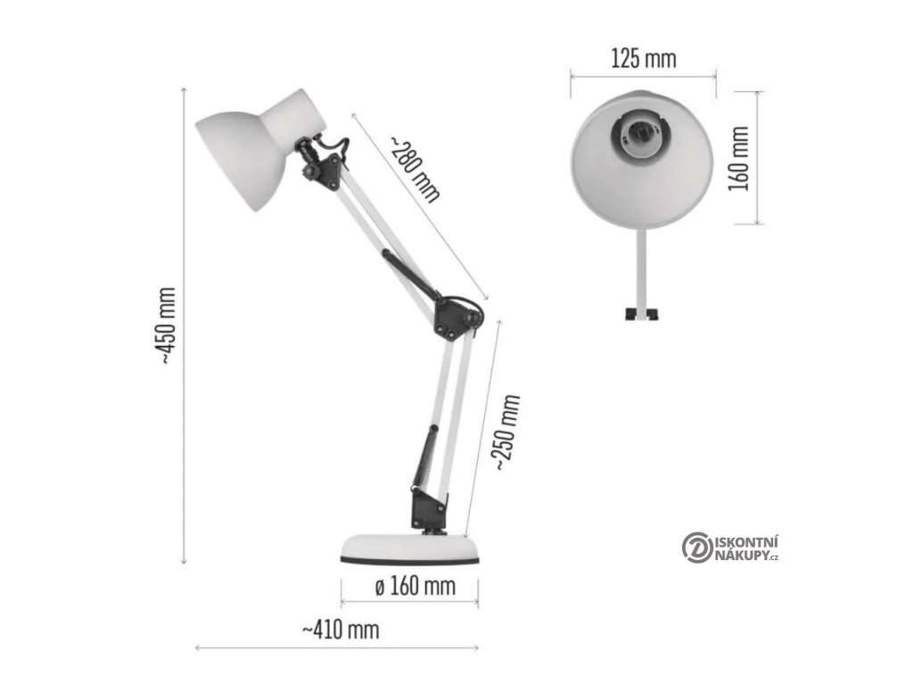 Lampička s kovovým tělem a rozměrem 480 x 155 x 330 mm je určena na žárovku E27, kterou můžete kdykoliv sami snadno vyměnit a vybrat si libovolnou barvu světla žárovky tak, aby bylo světlo co nejpříjemnější pro vaše oči.