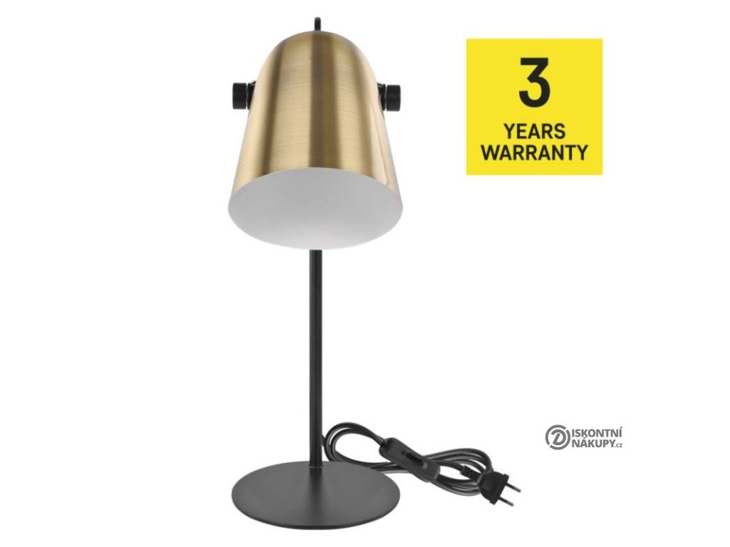 barva: zlatá|barva světla: neuvádí se|činitel stárnutí: neuvádí se|čip LED: neuvádí se|délka přívodního kabelu: 1,5 m|energetická třída: neuvádí se|energetická třída (od 1.9.2021): neuvádí se|index podání barev (CRI): neuvádí se|integrovaná nabíjecí baterie: ne|krytí: IP20|materiál: kov|max. výkon: 25 W|napájecí zdroj: 220–240 V|napájecí zdroj součástí balení: ano|napětí: 220–240 V|obsah rtuti: neuvádí se|patice (uchycení žárovky): E27|počet LED: 0|počet spínacích cyklů: neuvádí se|příkon: 25 W|prodejní obal: 1 ks, krabice|rozměr: 150 × 150 × 400 mm|rychlost náběhu na 100 %: neuvádí se|stmívání: ne|světelný tok: neuvádí se|teplota chromatičnosti: neuvádí se|typ napájení: síť|účiník: neuvádí se|USB port: ne|životnost: neuvádí seDoplňkové parametry