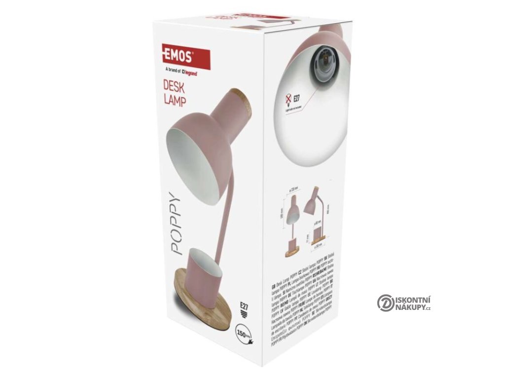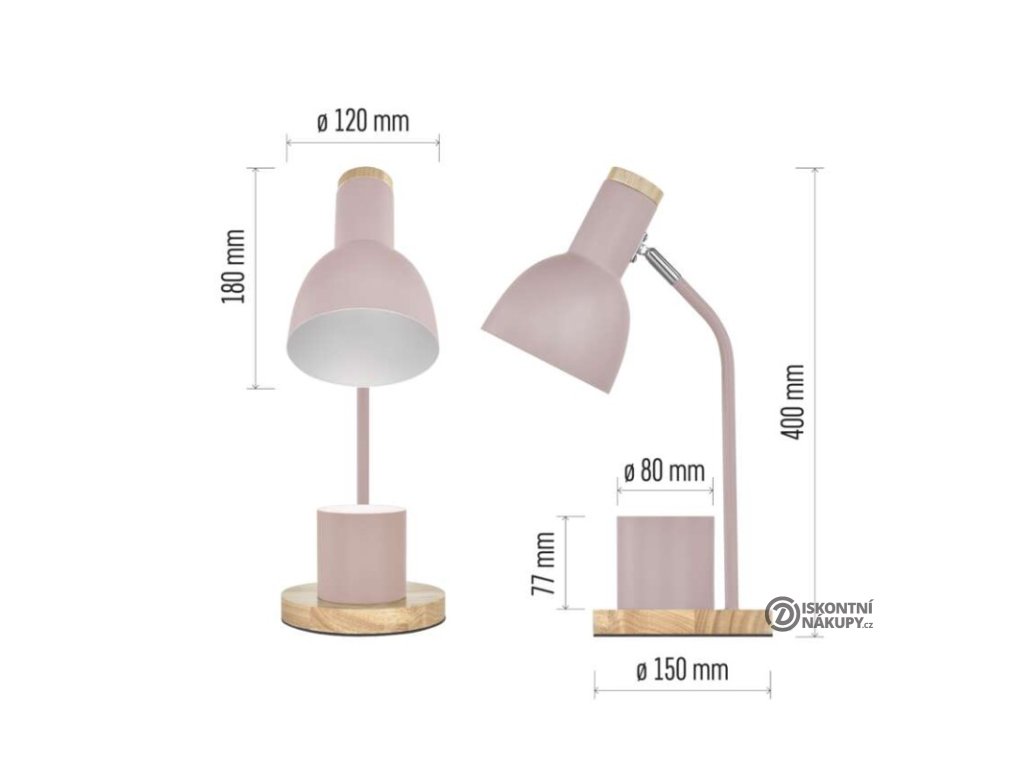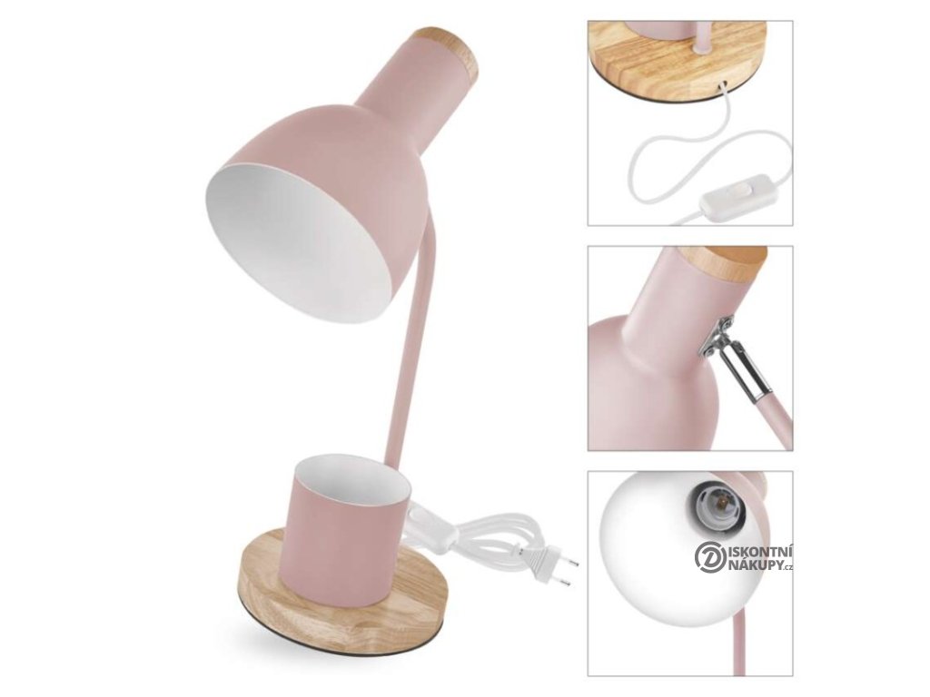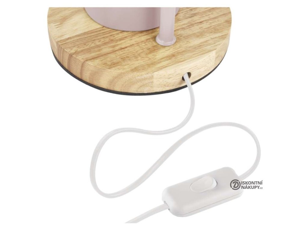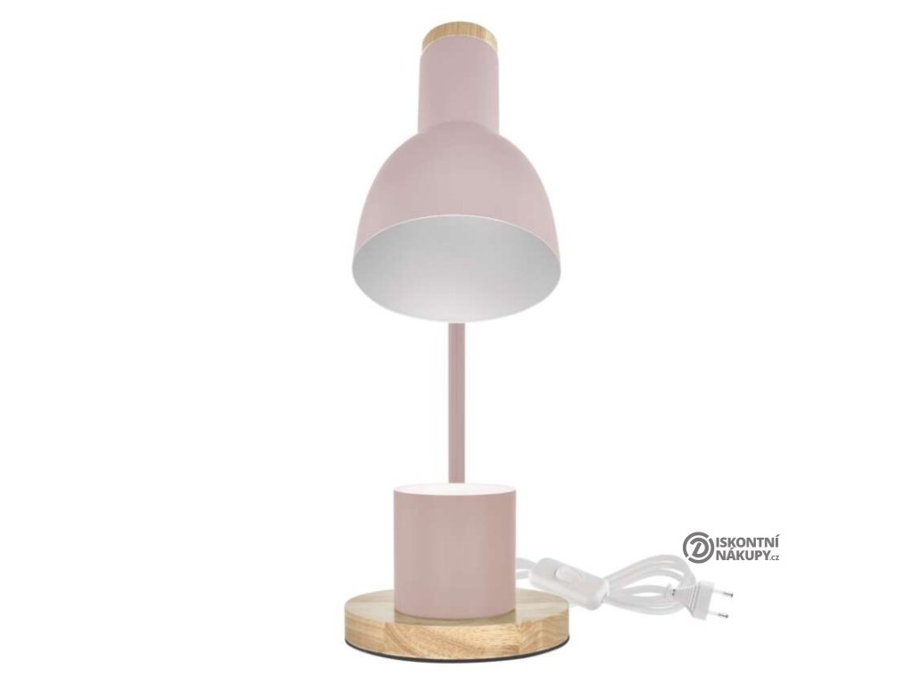 barva: růžová|barva světla: –|činitel stárnutí: –|čip LED: –|délka přívodního kabelu: 1,5 m|energetická třída: –|energetická třída (od 1.9.2021): –|index podání barev (CRI): –|integrovaná nabíjecí baterie: ne|krytí: IP20|materiál: kov + dřevo|max. výkon: 25 W|napájecí zdroj: 220–230 V|napájecí zdroj součástí balení: –|napětí: 220–230 V AC|obsah rtuti: –|patice (uchycení žárovky): E27|počet LED: 0|počet spínacích cyklů: 10 000|příkon: 25 W|prodejní obal: 1 ks, krabice|rozměr: 150 × 150 × 400 mm|rychlost náběhu na 100 %: –|stmívání: ne|světelný tok: –|teplota chromatičnosti: –|typ napájení: síť|účiník: –|USB port: ne|životnost: –Doplňkové parametry
