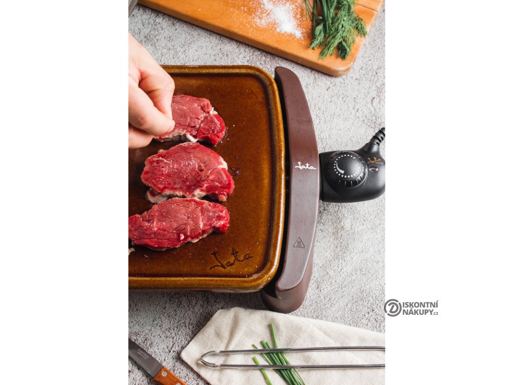 Terakotový gril s granitovým povrchem Jata GR5599, řemeslná ručně vyrobená deska, odolná proti poškrábání. Materiál terakota poskytuje jedinečné vlastnosti přírodního materiálu pro grilování a zejména Vaše zdraví. Granitový povrch poskytuje ještě lepší nepřilnavost. Deska 46 x 28 cm. Terakotový gril Jata GR559, řemeslná ručně vyrobená deska, odolná proti poškrábání. Materiál Terakota poskytuje jedinečné vlastnosti přírodního materiálu pro grilování a zejména Vaše zdraví. Deska 46 x 28 cm. Topné těleso ve tvaru M - hřeje rovnoměrně po celé ploše. Teplotně izolovaná držadla pro přenášení. Grilujte venku i uvnitř!. Snadné čištění. Příkon 1600 W. VYROBENO VE ŠPANĚLSKU.
