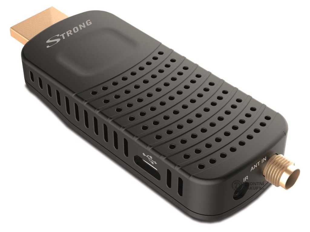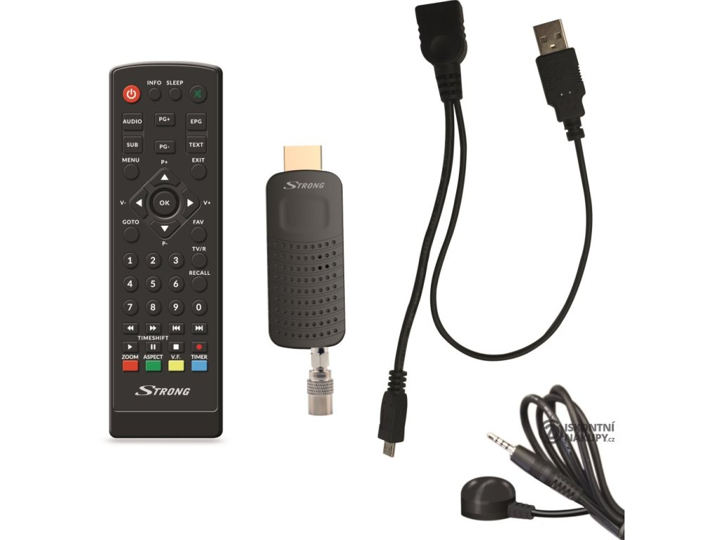 STRONG DVB-T/T2 tuner HDMI stick SRT 82/ Full HD/ H.265/HEVC/ externí anténa/ EPG/ PVR/ HDMI/ USB/ micro USB/ IR/ černý SRT82