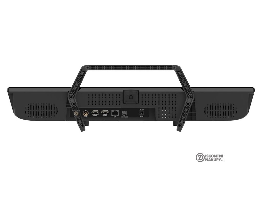 Rozhraní: Wi-Fi, 1× RJ-45, 1× HDMI, 1× HDMI ARC, 1× USB 2.0, 1× CI slot, 1× RF vstup, 1× LNB vstup, 1× sluchátkový výstup, 1× S/PDIF optický výstup, 1× AV vstup