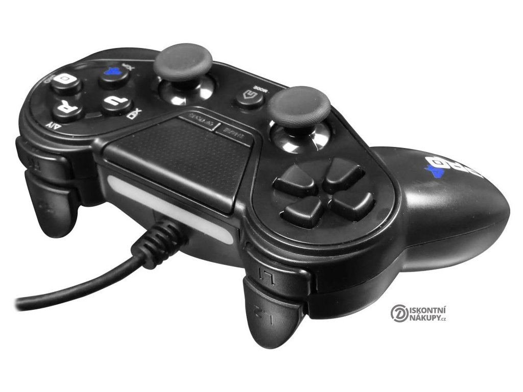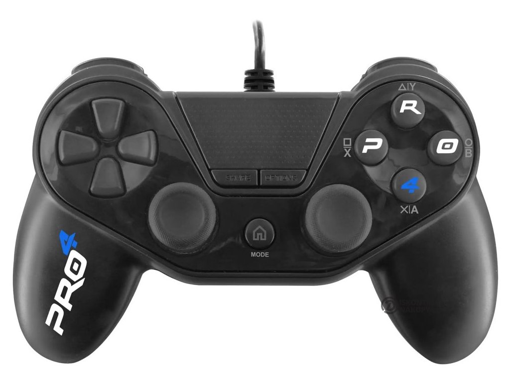 SUBSONIC by SUPERDRIVE Pro4 WiredDrátový ergonomický gamepad určený pro počítač nebo herní konzole PS4 a PS3. Disponuje 8směrným D-padem, klikacím předním panelem a 17 tlačítky, se kterými budete mít všechny herní funkce vždy na dosah ruky. Zaoblení analogových páček i tlačítek spouště zajistí precizní kontrolu v každé situaci. Připojení lze jednoduše realizovat pomocí USB konektoru.