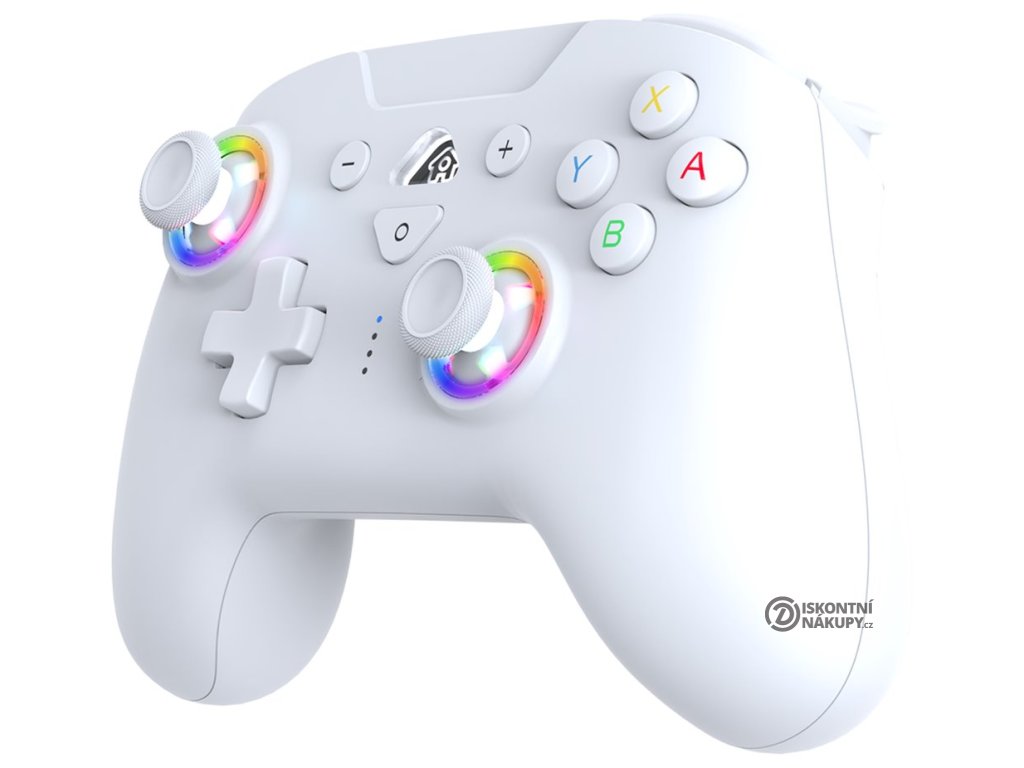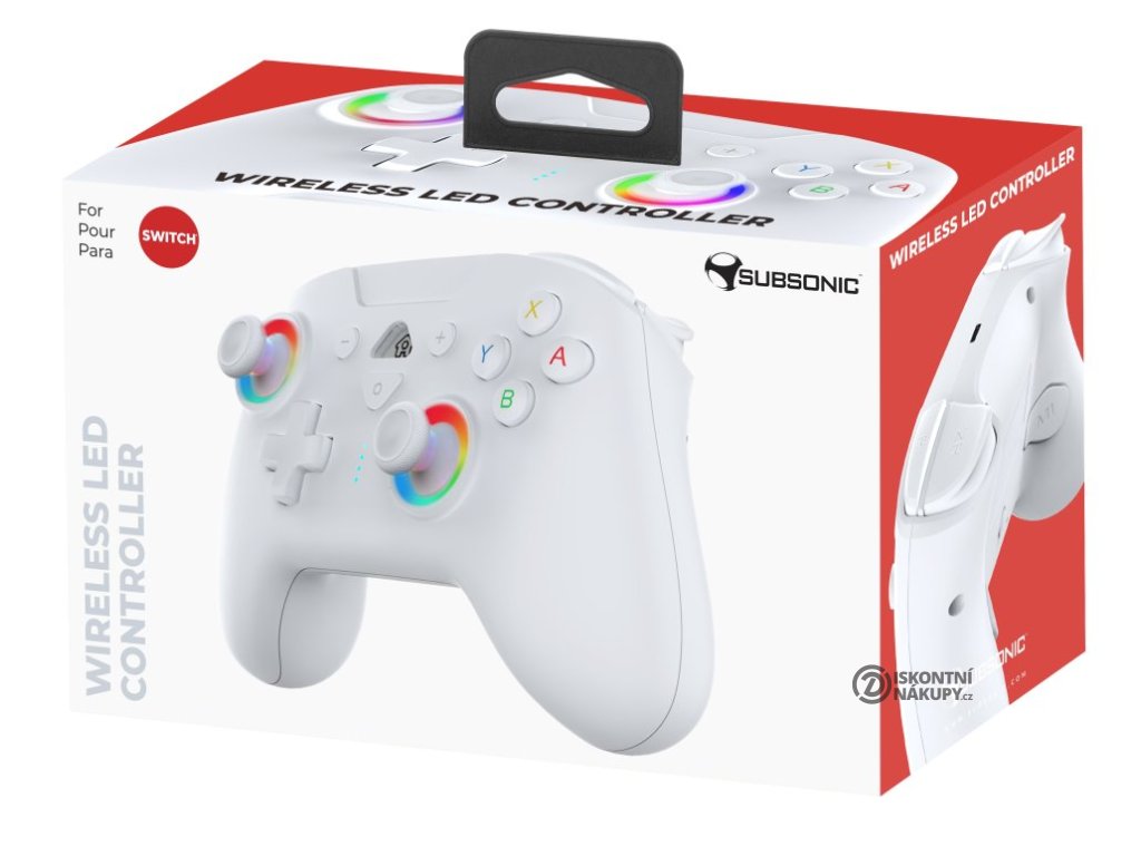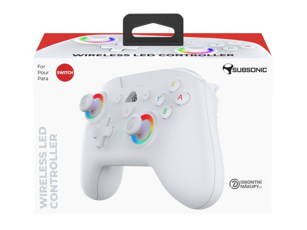 SUBSONIC by SUPERDRIVE Wireless LED pro Nintendo SwitchLehký bezdrátový gamepad založený na technologii Bluetooth podporuje připojení k herní konzoli Nintendo Switch. Díky vibracím nabízí realistický zážitek ze hry. Disponuje integrovanými snímači pohybu (gyroskop, akcelerometr), dvěma joysticky, směrovým D-padem a 14 tlačítky, včetně dvou programovatelných e-sports "M" tlačítek na spodní straně, se kterými budete mít všechny herní funkce vždy na dosah ruky. Jedinečný design ovladače skvěle doplňuje nastavitelné RGB podsvícení. Napájení zajišťuje integrovaná baterie, její dobíjení pak přiložený nabíjecí kabel.