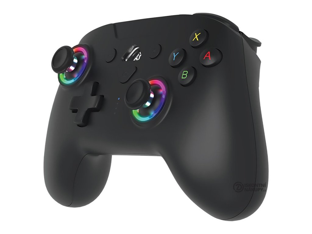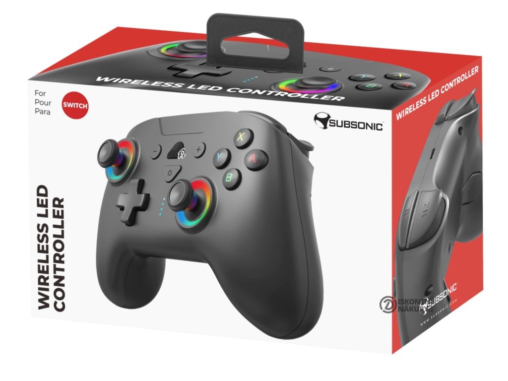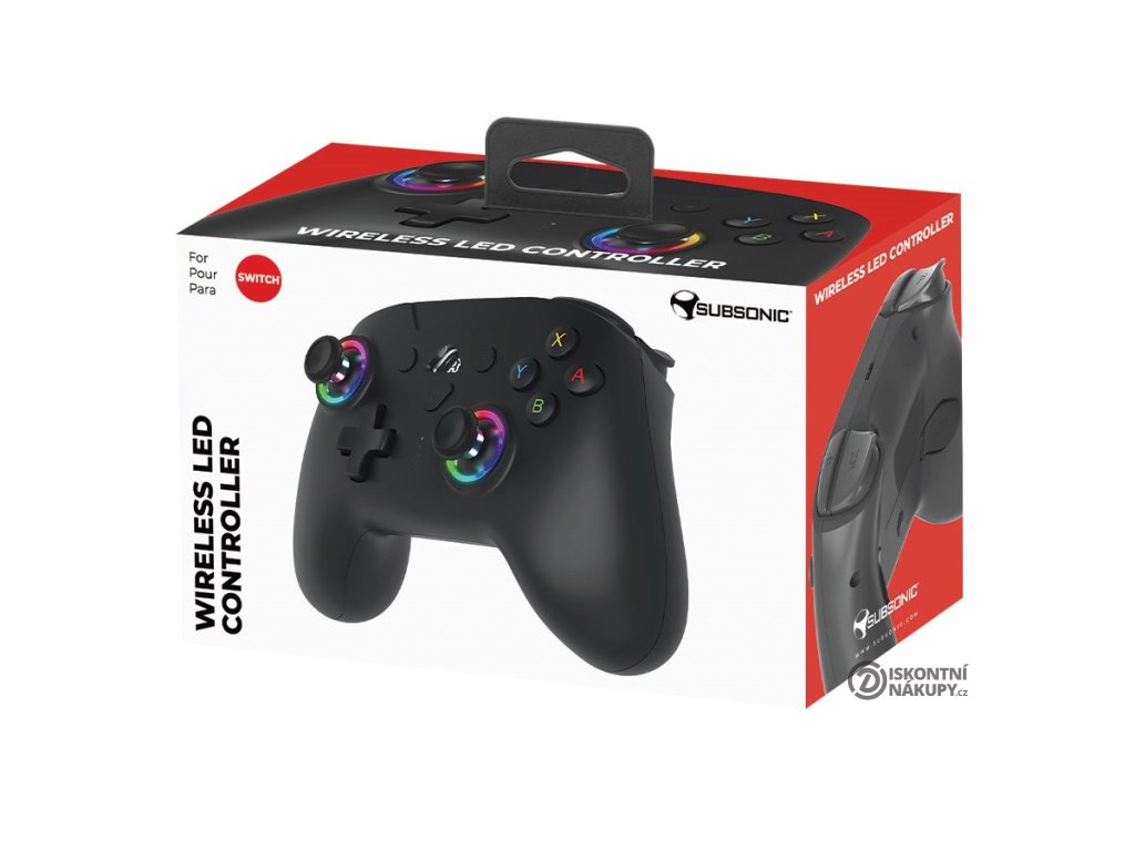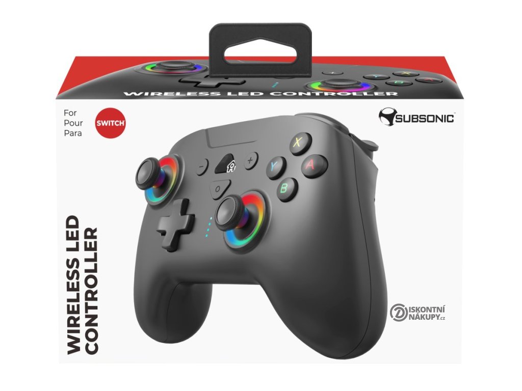 SUBSONIC by SUPERDRIVE Wireless LED pro Nintendo SwitchLehký bezdrátový gamepad založený na technologii Bluetooth podporuje připojení k herní konzoli Nintendo Switch. Díky vibracím nabízí realistický zážitek ze hry. Disponuje integrovanými snímači pohybu (gyroskop, akcelerometr), dvěma joysticky, směrovým D-padem a 14 tlačítky, včetně dvou programovatelných e-sports "M" tlačítek na spodní straně, se kterými budete mít všechny herní funkce vždy na dosah ruky. Jedinečný design ovladače skvěle doplňuje nastavitelné RGB podsvícení. Napájení zajišťuje integrovaná baterie, její dobíjení pak přiložený nabíjecí kabel.