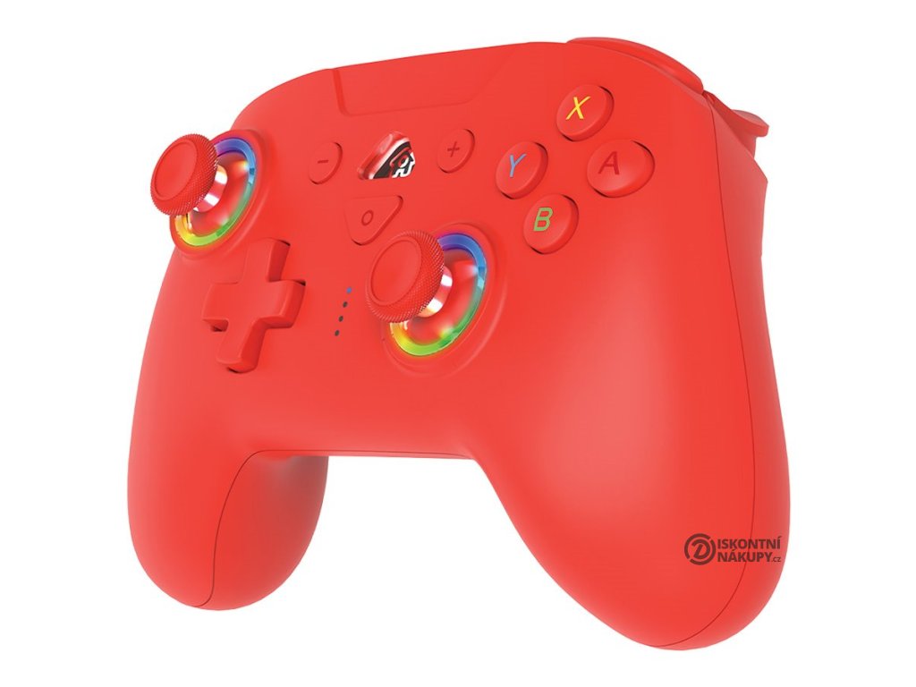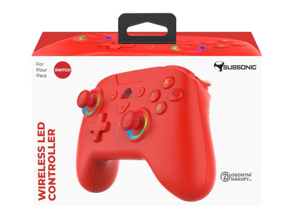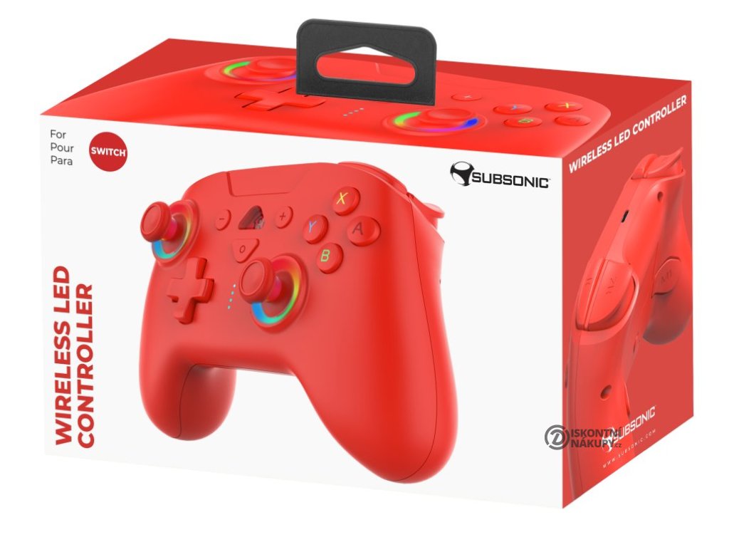 SUBSONIC by SUPERDRIVE Wireless LED pro Nintendo SwitchLehký bezdrátový gamepad založený na technologii Bluetooth podporuje připojení k herní konzoli Nintendo Switch. Díky vibracím nabízí realistický zážitek ze hry. Disponuje integrovanými snímači pohybu (gyroskop, akcelerometr), dvěma joysticky, směrovým D-padem a 14 tlačítky, včetně dvou programovatelných e-sports "M" tlačítek na spodní straně, se kterými budete mít všechny herní funkce vždy na dosah ruky. Jedinečný design ovladače skvěle doplňuje nastavitelné RGB podsvícení. Napájení zajišťuje integrovaná baterie, její dobíjení pak přiložený nabíjecí kabel.