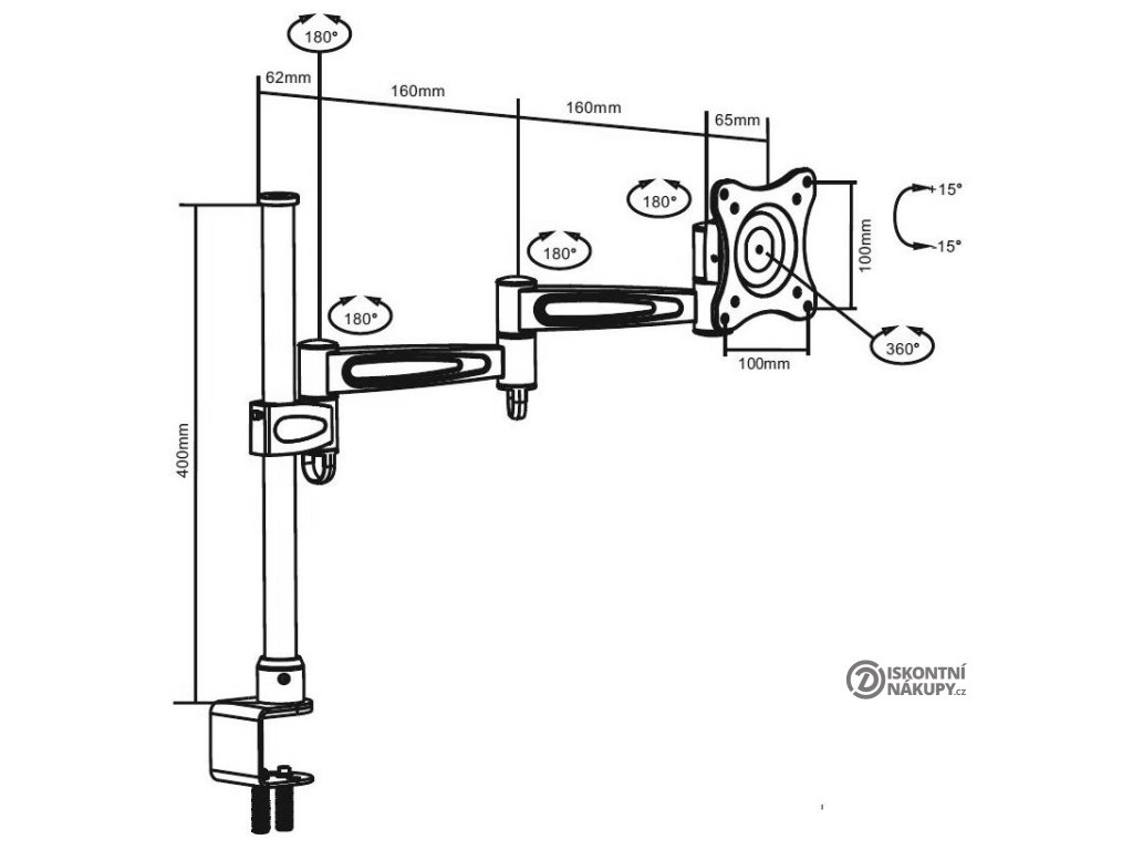 Sunne by Elite Screens LCD-B13Držák na stůl pro montáž monitorů a TV s úhlopříčkou 13" až 27". Maximální zatížení tohoto držáku je 15 kg. Držák dovoluje náklon 15°, otočení 180° a Pivot 360°. Upevnění držáku je možné na pracovní desku s tloušťkou v rozmezí 15–47 mm. Rameno dosahuje délky 439 mm.