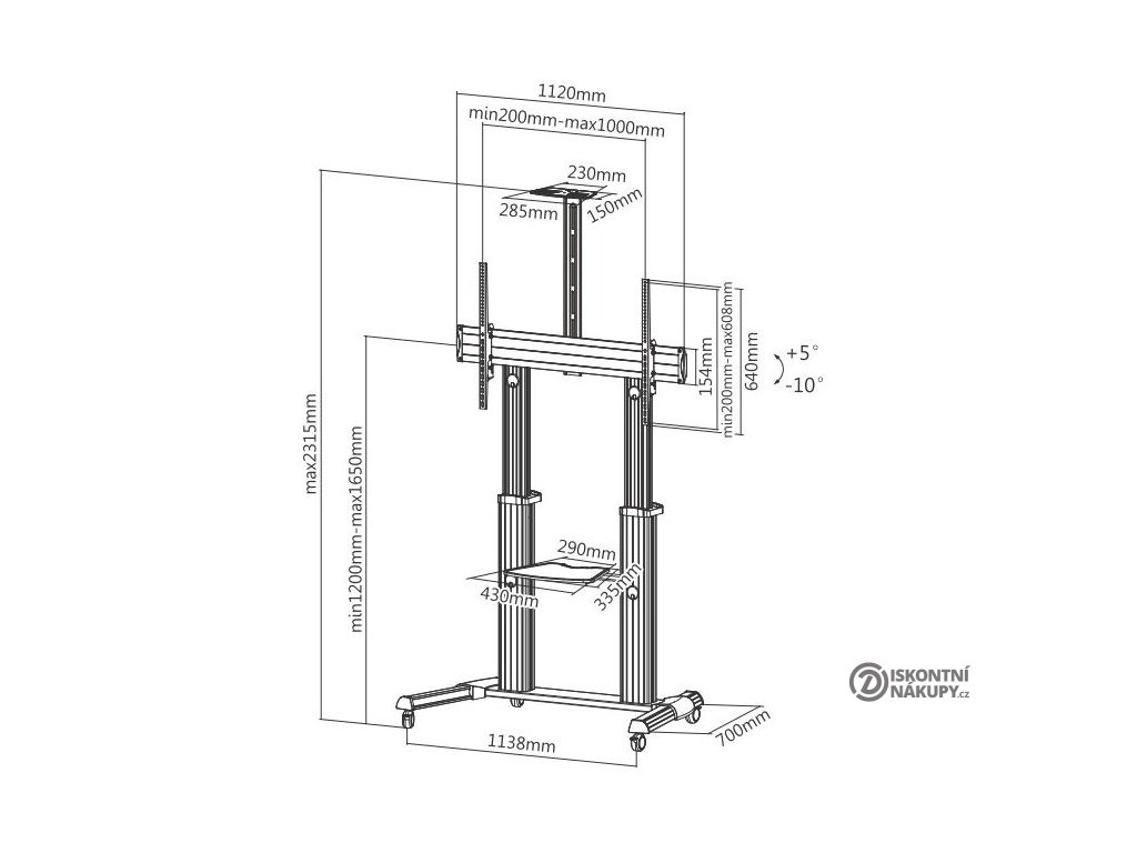 Sunne by Elite Screens S22Pojízdný TV stolek se zesílenými kolečky. Maximální zatížení je 80 kg. Stolek nabízí naklopení v rozmezí -10° až +5°.