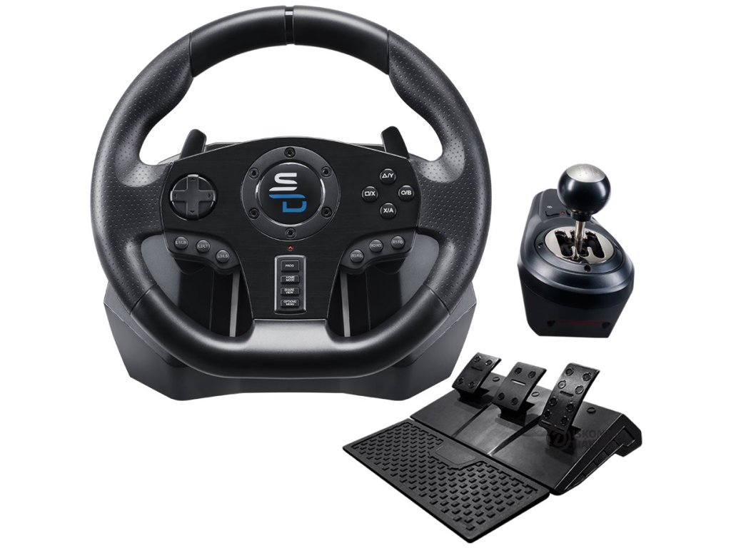 Herní set SUPERDRIVE GS850-X pro kompletní ovládání virtuálního sporťáku, formule nebo třeba motokáry. Sada obsahuje volant, řadicí páku i pedály, takže svoji garáž budete mít pod dokonalou kontrolou a vychutnáte si mimořádně realistické zážitky v každé jízdě. Manuální řadicí páka nabízí 5 rychlostí a zpátečku, protiskluzové pedály vám umožní okamžitou akceleraci nebo prudkou brzdu. Volant disponuje 270° úhly otáčení, díky čemuž se přizpůsobí každému jízdnímu stylu. Nezáleží na tom, jestli jedete střídmě a na jistotu, nebo se snažíte prchnout před policií.