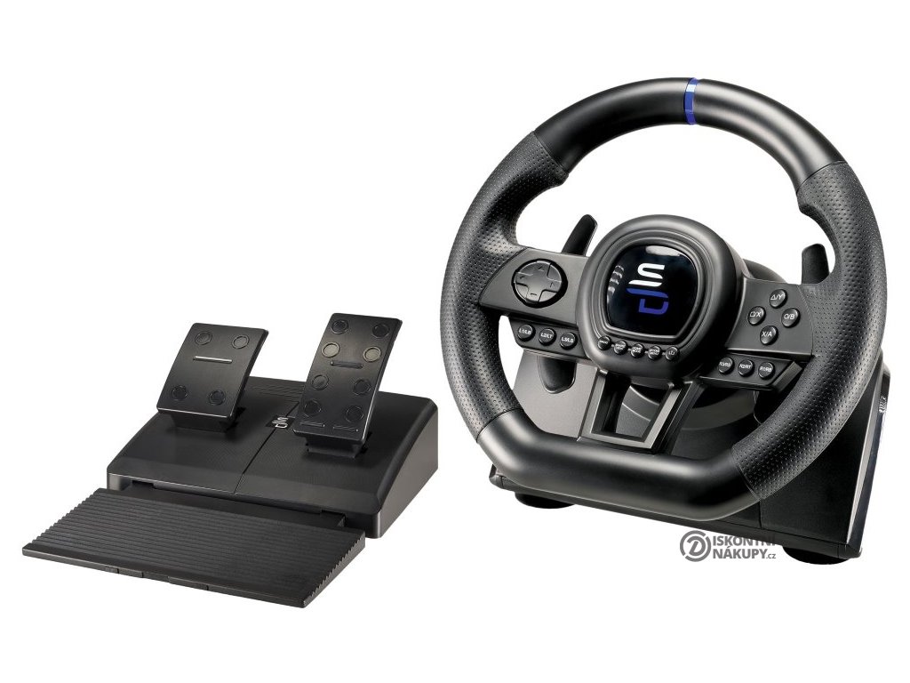 Volant s pedály pro PS4, PS3, Xbox One, Xbox X, Xbox S, Nintendo Switch a PC. Volant SV650 nabízí 270° úhel otáčení, který se přizpůsobí vašim jízdním návykům a poskytuje tak věrný závodní zážitek. Je vybaven řadicí pákou, duálním vibračním motorem a také protiskluzovým systémem pedálů. Je plně programovatelný a nabízí 3 úrovně citlivosti. Volant je vybaven přísavkami a lze jej snadno připevnit na rovný povrch. Zajisté potěší také konektor pro připojení sluchátek.