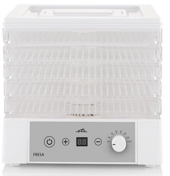ETA FRESA umožňuje použít i časovač, ten je možné nastavit v rozmezí 1–48 hodin (s krokem po 1 hodině). O vypršení časového limitu vás informuje zvuková signalizace. Sušičku můžete bez obav nechat běžet i přes noc, je totiž vybavená ochranou proti přehřátí. Lze ji rychle sestavit, snadno se ovládá a jednoduše udržuje. Sušicí síta jsou vyrobena z vysoce kvalitního BPA free materiálu, jsou tedy zdravotně nezávadná.