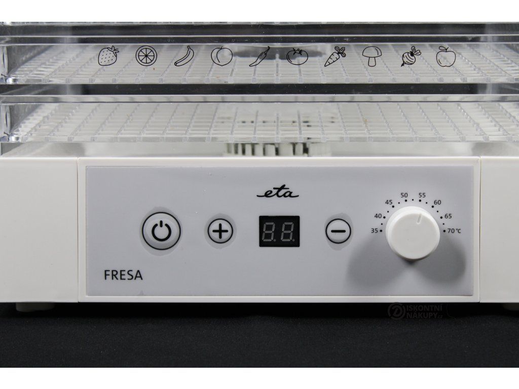 Sušičku ETA FRESA rychle sestavíte, snadno se ovládá a jednoduše udržuje. Do provozu ji uvedete spínačem ON/OFF. Přehledný LED displej zobrazuje nastavenou a zbývající dobu sušení.