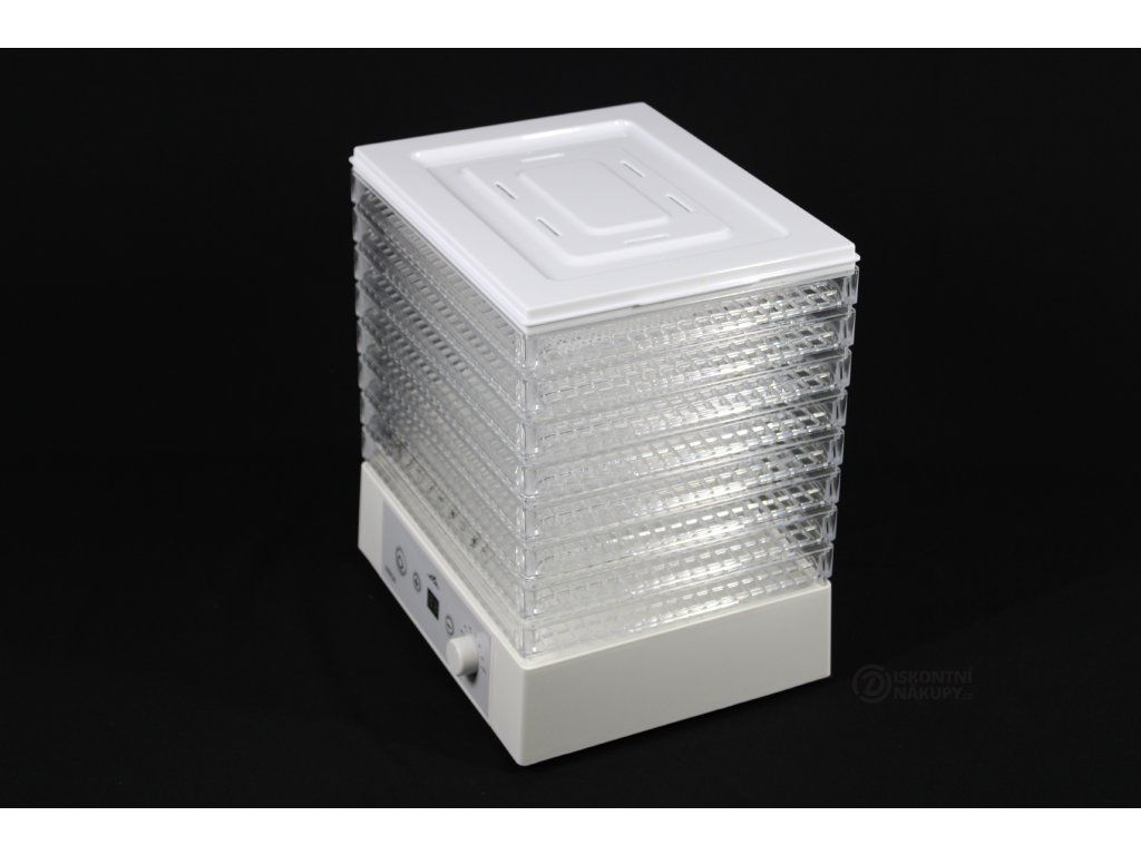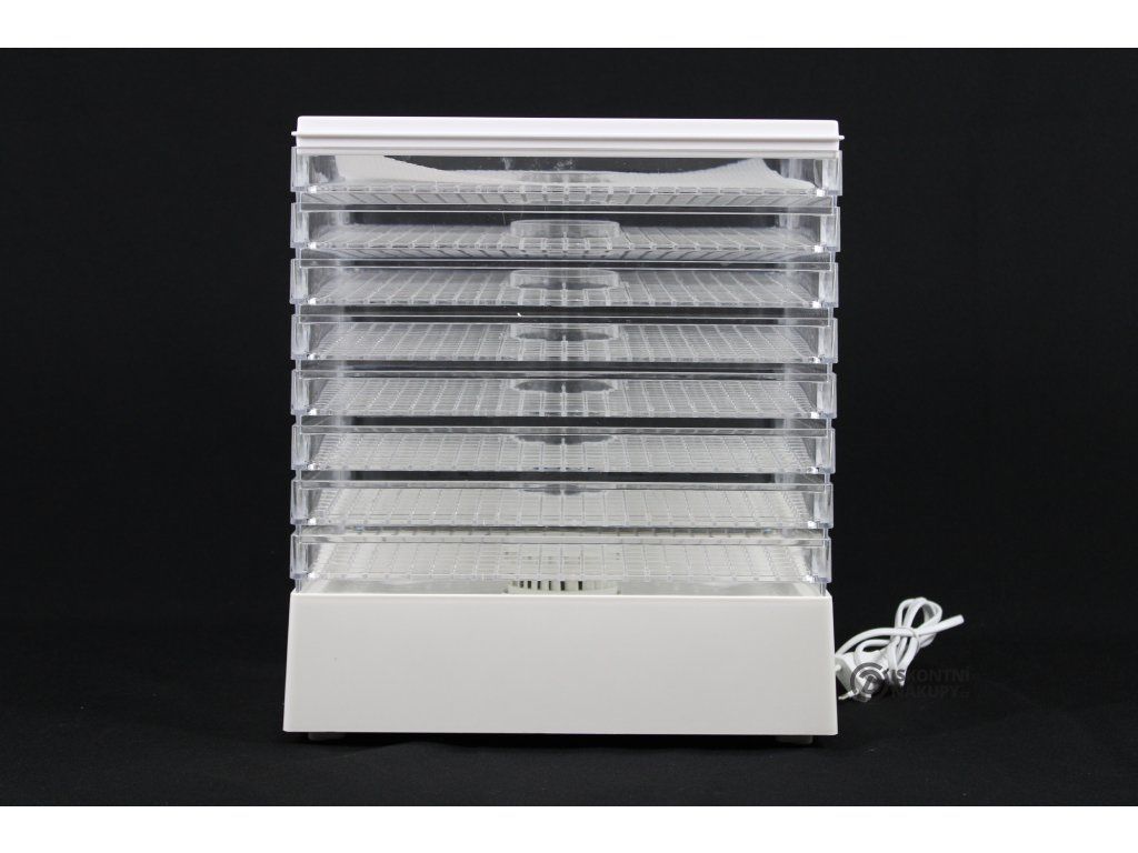 sušička ovoce • příkon 250 W • LED displej • 8 pater • aktivní sušicí plocha 0,60 m2 • regulace teploty 35 až 70 °C • sítko na bylinky • kvalitní materiál sít BPA free • spínač ON/OFF • tichý chod • ochrana proti přehřátí • 1m přívodní kabel • V × Š × H: 35,5 × 32,0 × 27,5 cm