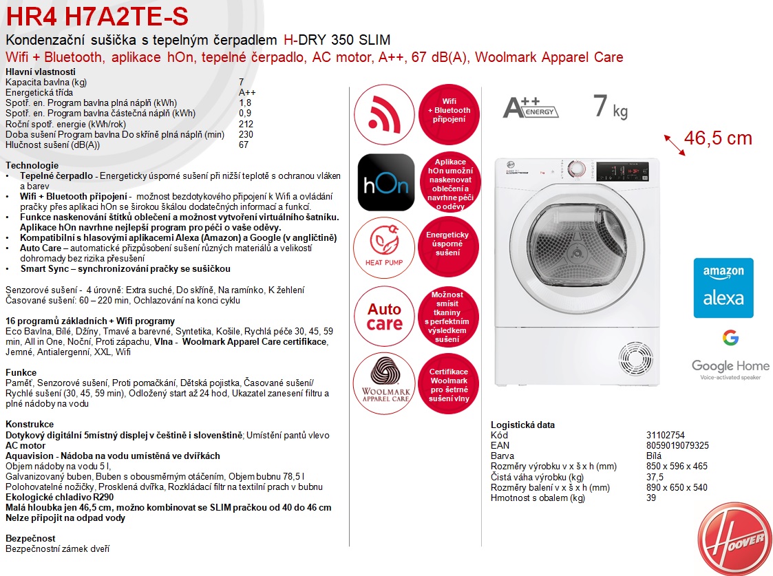 Sušička prádla Hoover HR4 H7A2TE-S ..Nové zboží