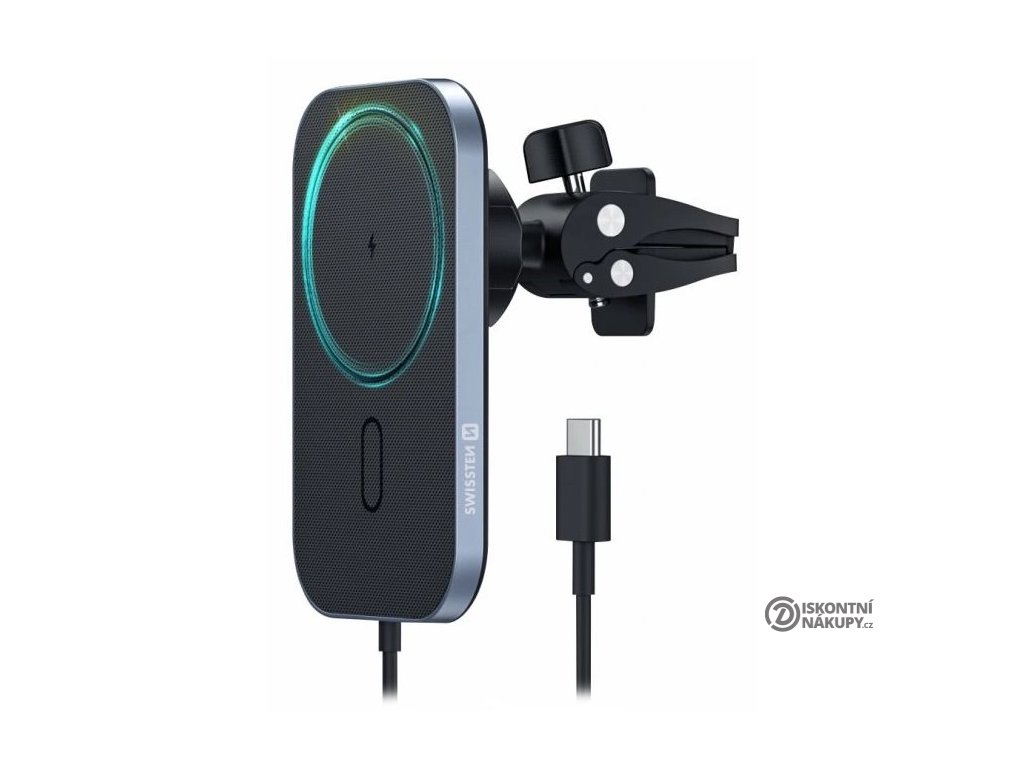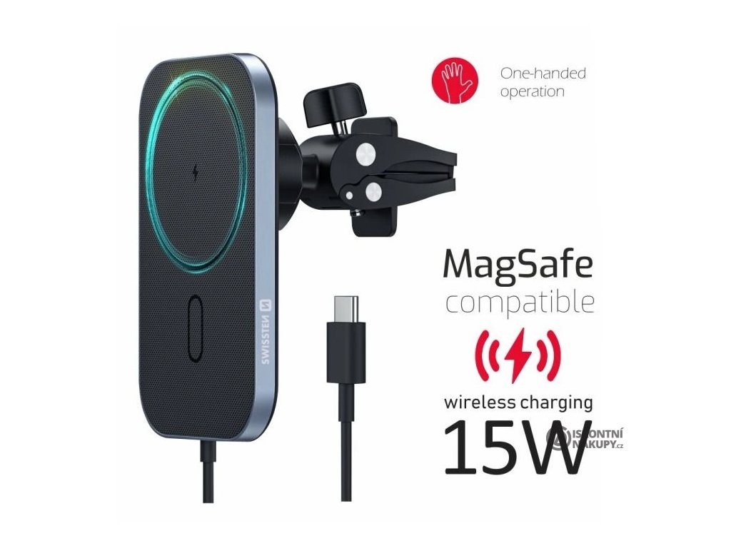 Swissten magnetický držák do ventilace auta s bezdrátovým nabíjením 15w (kompatibilní s magsafe) 65010609