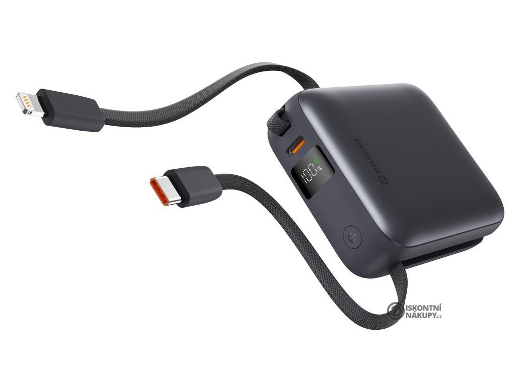 SWISSTEN powerbanka 10000 mAhPowerbanka s kapacitou 10 000 mAh, navržená pro moderní uživatele, kteří potřebují nabíjet více zařízení současně. Nabízí jeden port USB-C a integrované USB-C a Lightning kabely. Maximální výstupní výkon až 22,5 W umožňuje rychlé nabíjení telefonů a tabletů. Potěší také praktický LCD displej zobrazující aktuální stav nabití. Pro nabíjení samotné powerbanky slouží vstupní konektor USB-C či integrovaný USB-C kabel. Vyrobena je z ohnivzdorného plastu, což výrazně zvyšuje její odolnost a bezpečnost.