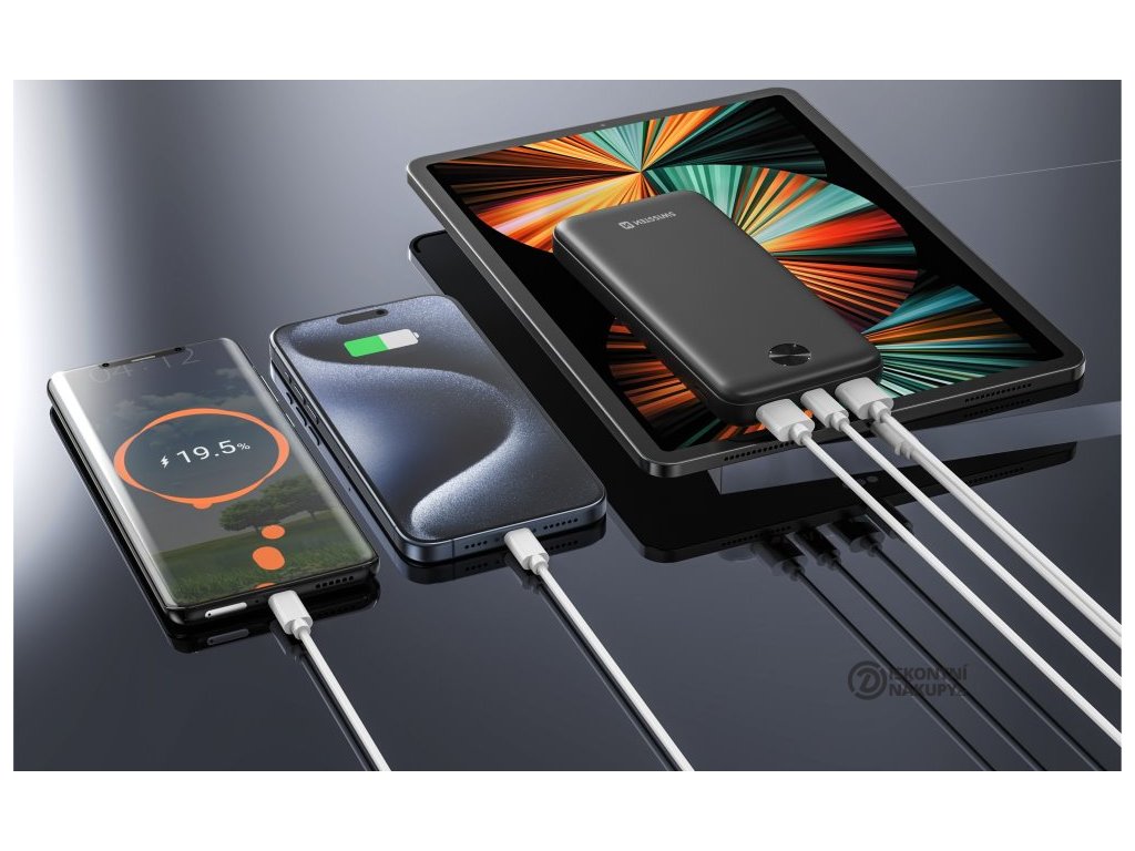 SWISSTEN WORX PRO 10 000 mAhPowerbanka v lehkém a kompaktním designu s kapacitou 10 000 mAh nabízí dva USB porty pro nabíjení až dvou zařízení současně. Maximální výstupní výkon až 10,5 W zajišťuje spolehlivé a stabilní dobíjení všech běžných elektronických zařízení. Potěší také praktické LED diody zobrazující aktuální stav nabití. Pro nabíjení samotné powerbanky slouží vstupní konektor USB-C. Díky ohnivzdorného plastu, z něhož je vyrobena, nabízí absolutní bezpečnost.