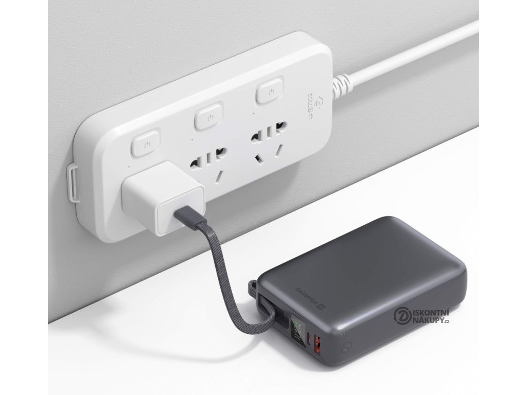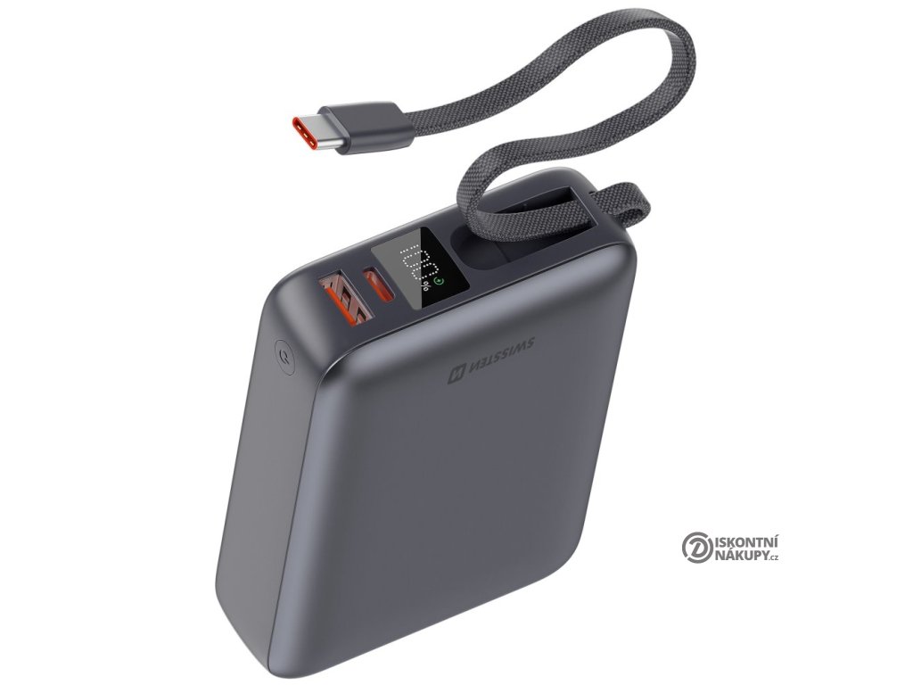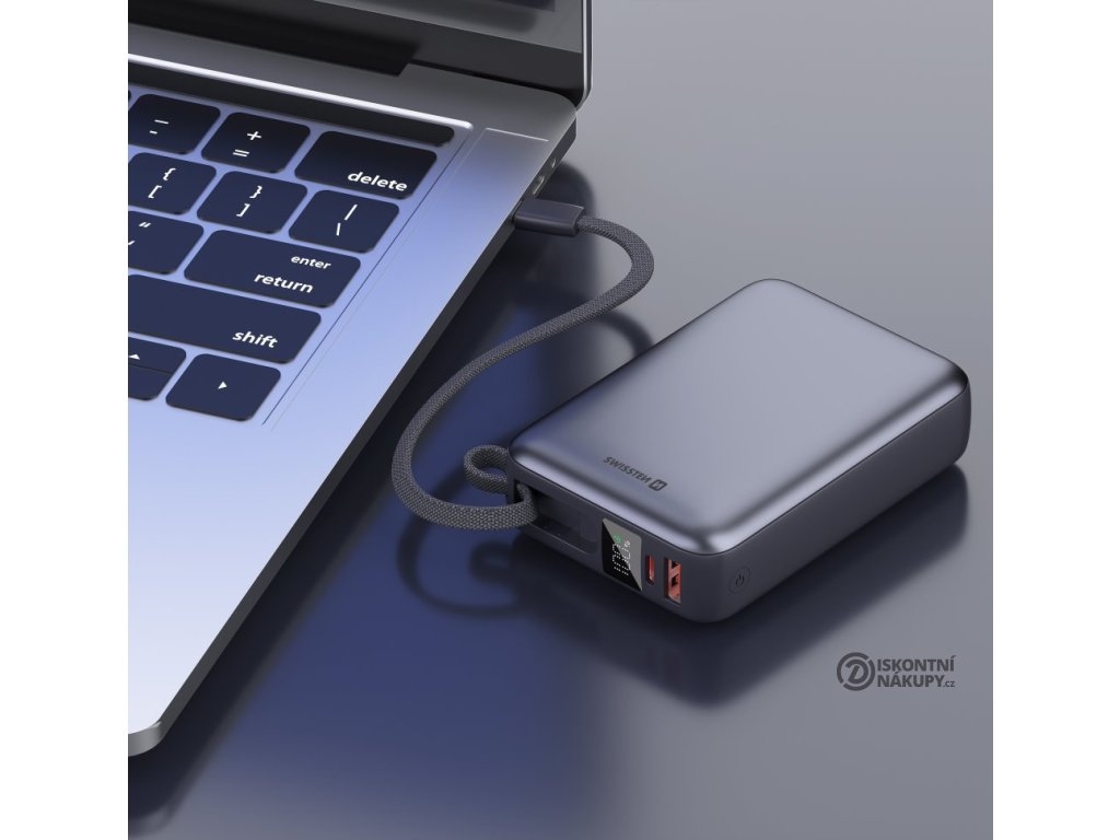 Swissten Power bank 20000 mAh 45W s integrovaným kabelem USB-C / šedá 22013976