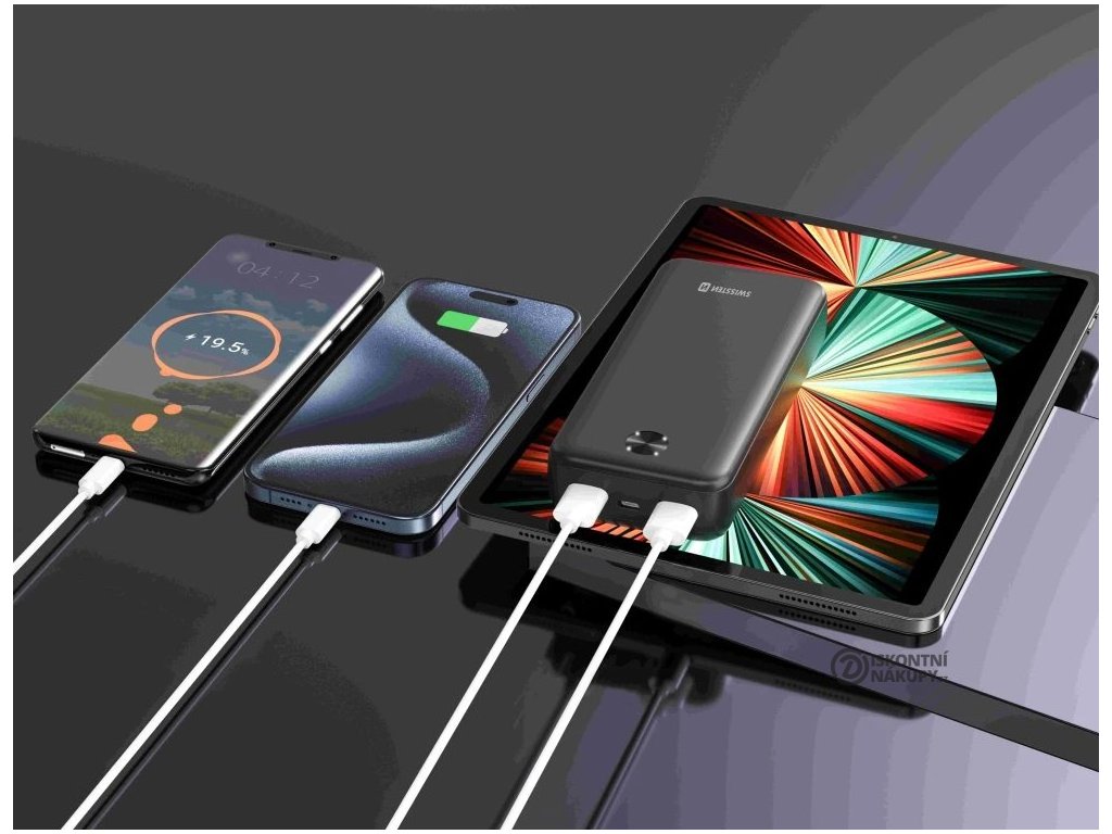 SWISSTEN WORX PRO 20 000 mAhPowerbanka v lehkém a kompaktním designu s kapacitou 20 000 mAh nabízí dva USB porty pro nabíjení až dvou zařízení současně. Maximální výstupní výkon až 10,5 W zajišťuje spolehlivé a stabilní dobíjení všech běžných elektronických zařízení. Potěší také praktické LED diody zobrazující aktuální stav nabití. Pro nabíjení samotné powerbanky slouží vstupní konektor USB-C. Díky ohnivzdorného plastu, z něhož je vyrobena, nabízí absolutní bezpečnost.