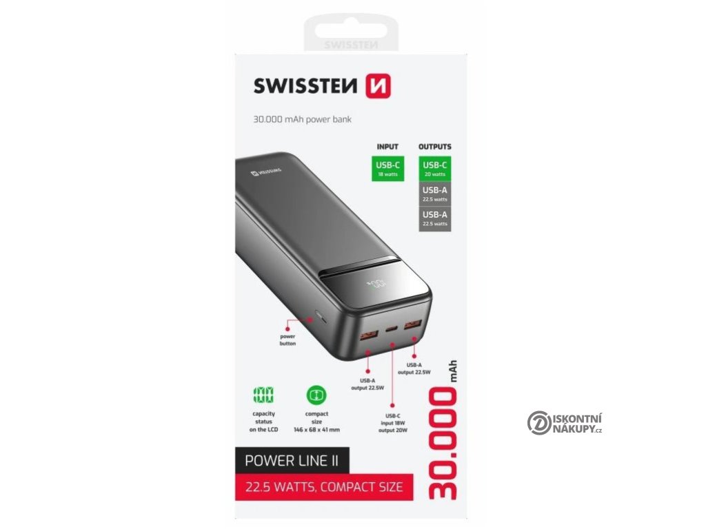 Swissten Power bank 30000 mAh POWER LINE II - černá 22013948