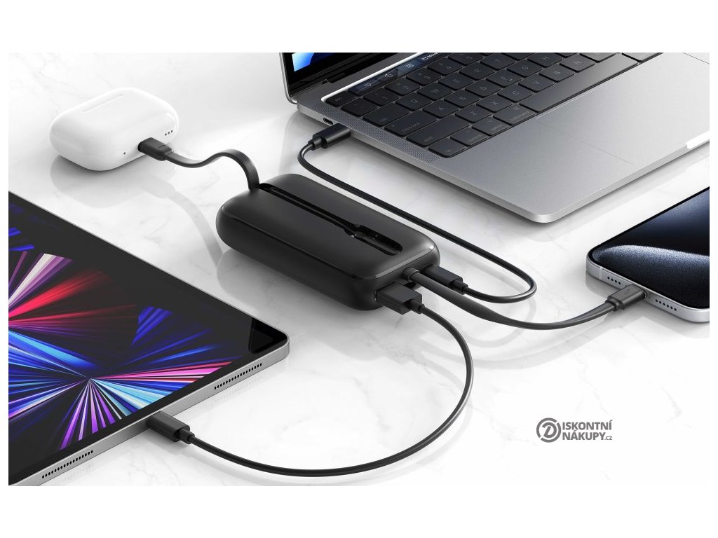 Swissten Power bank VOLTBOX 35W 10000 mAh s integrovanými kabely - USB-C, A, Lightning / černá 22013936